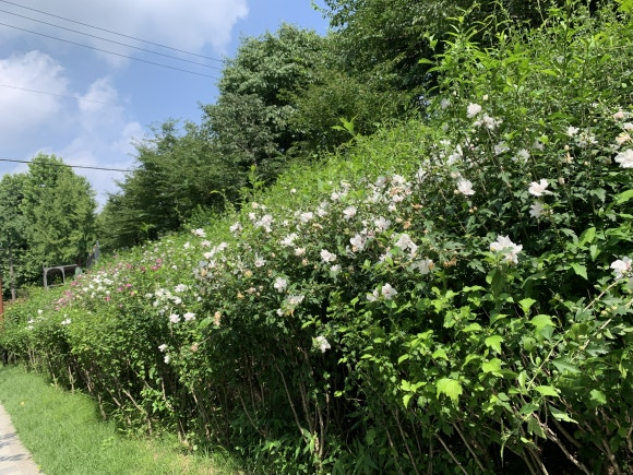 무궁화는 어디에 숨어있다 이렇게 갑자기 여기저기서 나타나는지 의아스러울 지경이다. 그 자리에 있었는지도 모를 식물이 갑자기 아름다운 꽃을 피우며 자기의 존재를 드러내는 것을 보면 신기한 마음이 들기도 하고 기특하기도 하다. 죽은 듯이 숨어있던 식물들이 갑자기 “나 여기 있소”하며 존재를 드러내면 “아, 바야흐로 저 식물이 꽃을 피우는구나”하는 것을 알게 된다. 사람에게도 전성기가 있다. 그것을 우리는 ‘인생에 꽃을 피운다’라고 말한다. 식물에게서 깨달은 표현이라고 생각한다.
