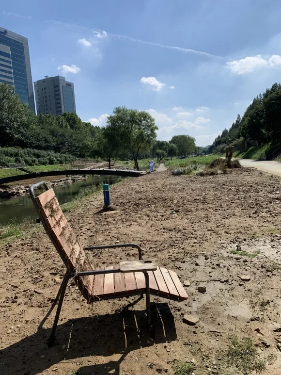 며칠 후 다시 양재천으로 나갔다가 충격을 받았다. 홍수가 지나간 양재천은 그야말로 폭탄을 맞은 것 같았다. 망초꽃이 아름답게 피어있던 물억새 밭은 큰 물이 지나가면서 반쯤 죽은 잡초밭이 되어버렸다. 산책객들을 쉬게 하던 나무 의자는 흙투성이가 되어 돌아앉아 있었고, 가을맞이를 위해 무언가 꽃씨를 뿌렸을 하천변은 뻘투성이가 되어 있었다.