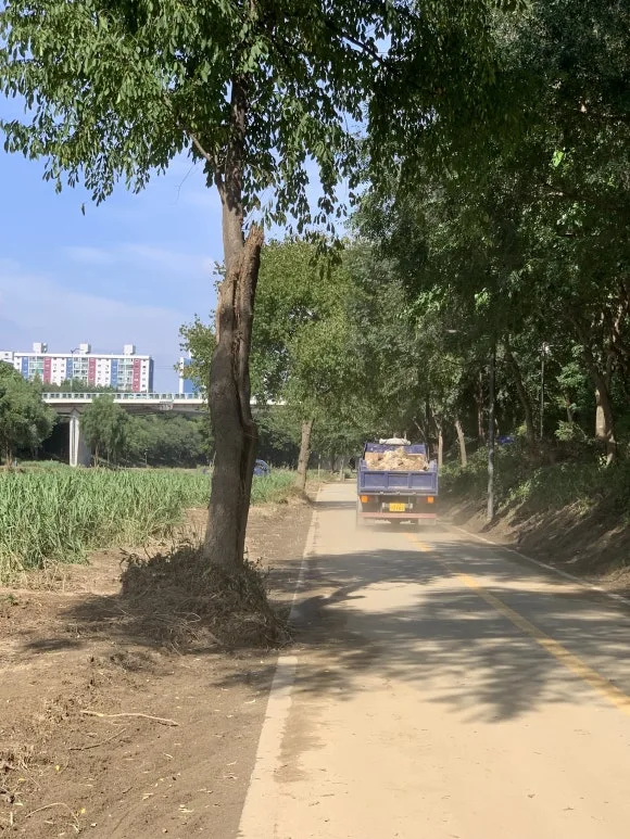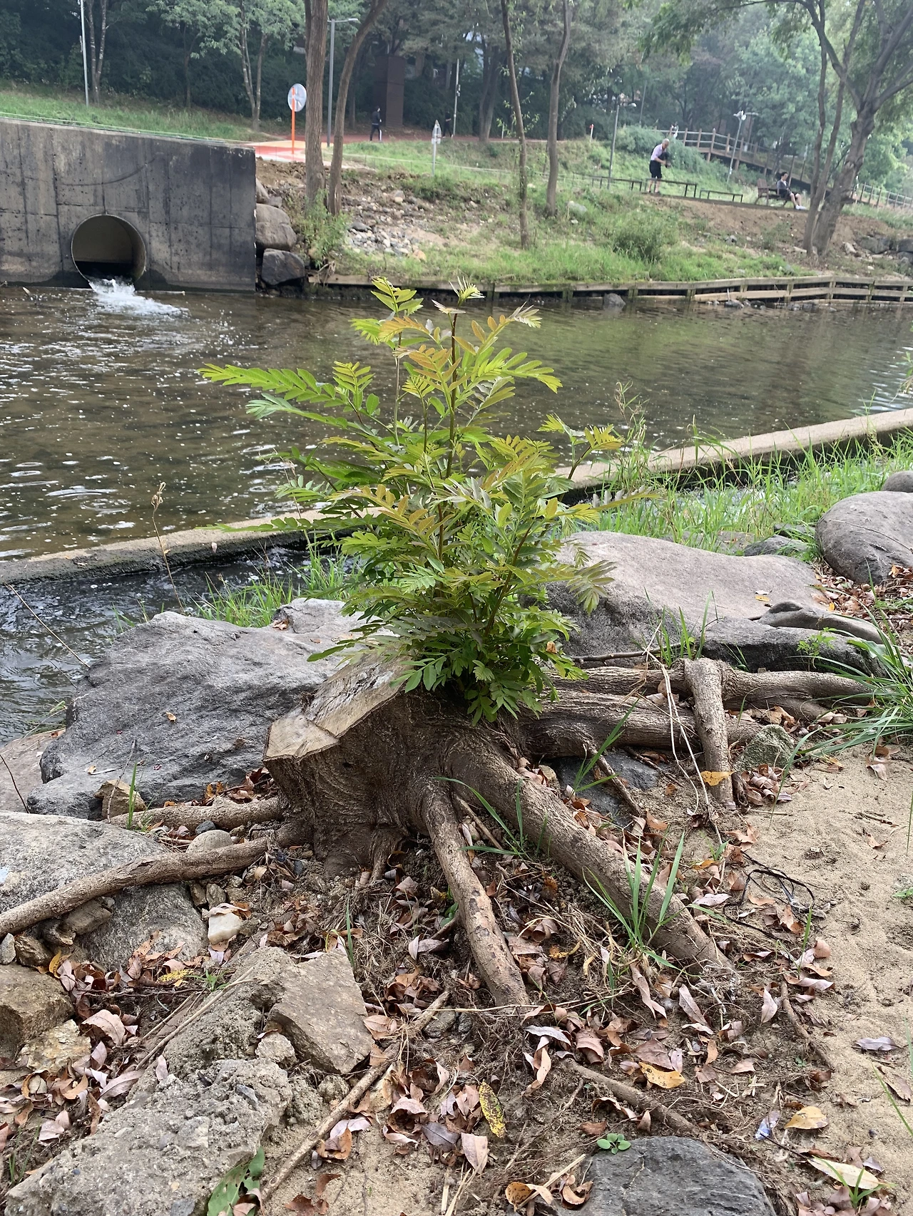 더더욱 놀라운 것은 양재천변에서 중국굴피나무도 사라져 버렸다는 것이었다. 강변에 긴 수술을 드리우고 있던 연녹색의 나무를 다시 볼 수 없다니 너무 슬펐다. 가까이 다가가 보니 중국굴피나무가 있었던 곳에는 잘린 나무의 그루터기만 참혹하게 남아있었다.