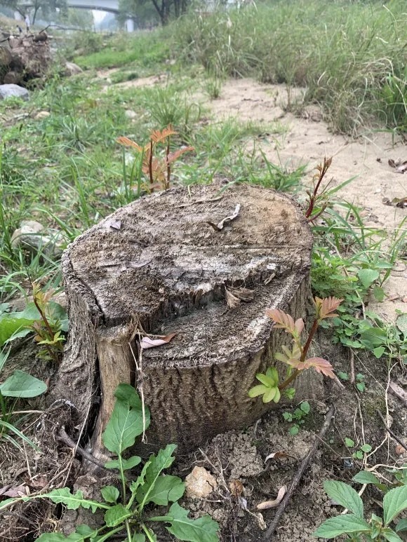 그 후 중국굴피나무의 베어진 그루터기 곁은 지나다가 죽은 나무에서 새잎이 왕성하게 자라 나오는 모습을 발견하였다. 반갑고 기뻤다. 원래의 나무처럼 큰 나무로 자라기까지에는 얼마나 긴 시간이 필요할지 모르지만 어쨌든 죽은 그루터기에서 새 생명이 움트고 있다니 자연이 키워내는 생명력이 놀라울 뿐이었다.