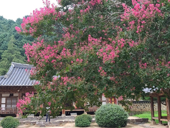 사찰에서도 배롱나무를 많이 심었는데, 이는 스님들이 배롱나무의 껍질이 계속 벗겨지는 것처럼 수행정진을 통해 속세의 때를 깨끗이 씻어버리라는 뜻이라고 한다. 절집 앞에 배롱나무가 꽃을 피우면 역시 고가의 분위기가 확 살아난다. 절집에서도 속인인 나는 수행정진의 이유야 모르겠고 그저 배롱나무의 농염한 아름다움에 혹할 뿐이다.