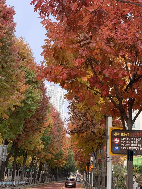 그곳의 루브라참나무 가로수들이 불게 물들면 너무 멋있어서 “여기 루브라참나무가 있어요”하고 큰소리로 외쳐주고 싶다.