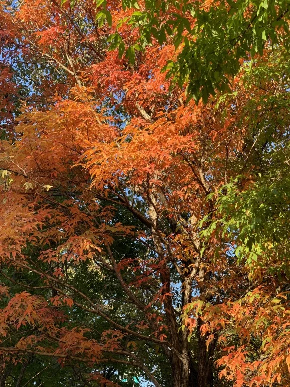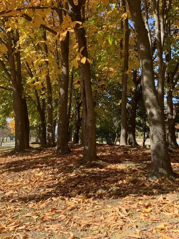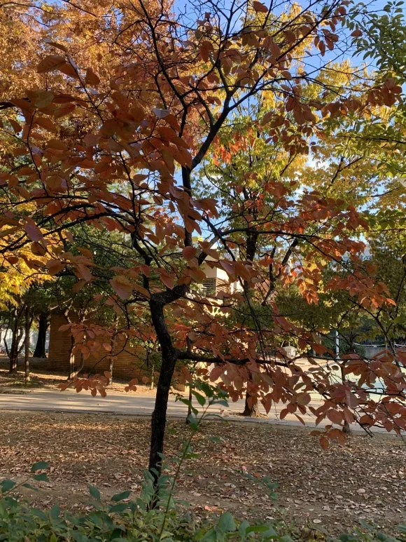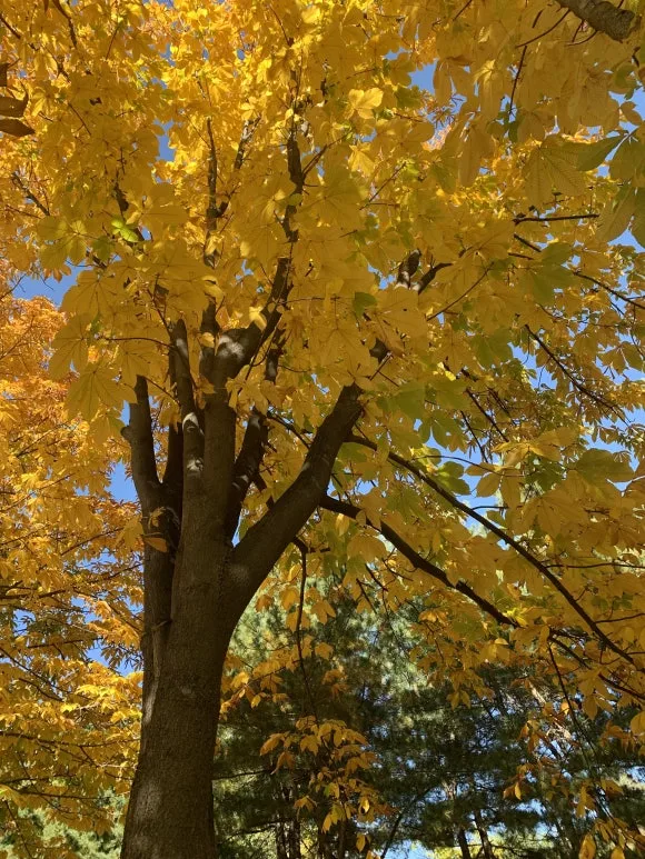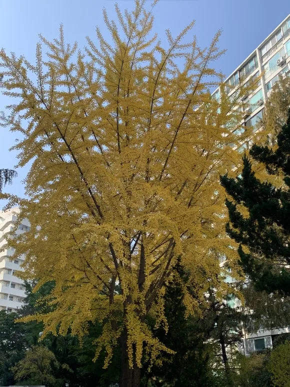 칠엽수도 노랗게 물이 든다. 은행 못지않게 아름다운 노란 단풍이다. 푸른 하늘아래 펼쳐진 황금색 나뭇잎들이 콘트라스트를 이루며 가을날 자연의 연주를 펼치면 이 단풍 아래에 오래 머물며 온화한 나무의 기운을 얻고 싶어 진다.