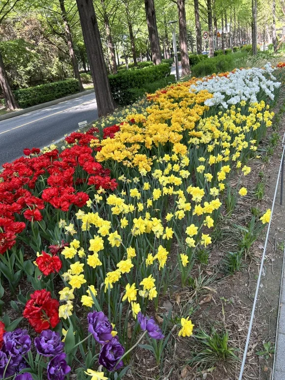 다양한 색과 모양의 수선화 품종이 개발된 듯, 양재천을 화려하게 수놓은 다양한 수선화들이 눈길을 사로잡는다. 그러나 뭐니 뭐니 해도 수선화를 대표하는 색은 노란색이다.
