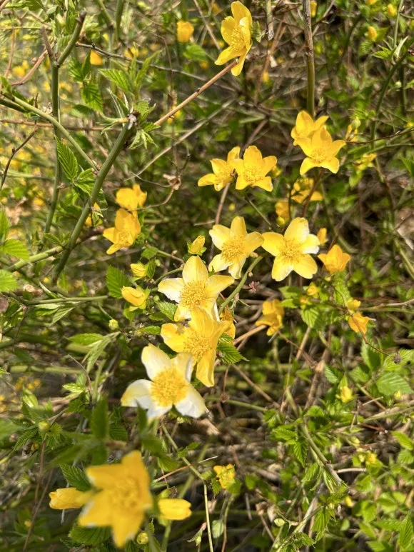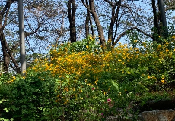 황매도 빼놓을 수 없는 노란 봄꽃이다. 양재천에 이 황매를 많이 심어두었다. 초록의 세상이 열릴 때 노란색 황매는 초록색 식물들과 콘트라스트를 이루며 더욱 생생하게 보인다.