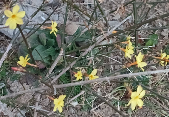 영춘화 꽃 모양은 개나리를 닮았는데 줄기는 인동초 같고 꽃 색깔은 개나리 같은 노란색이다. 영춘화(迎春花)란 이름 자체가 봄을 맞이하는 꽃이라는 뜻이다. 이 꽃은 개나리보다 더 먼저 노랑 꽃잎을 연다.