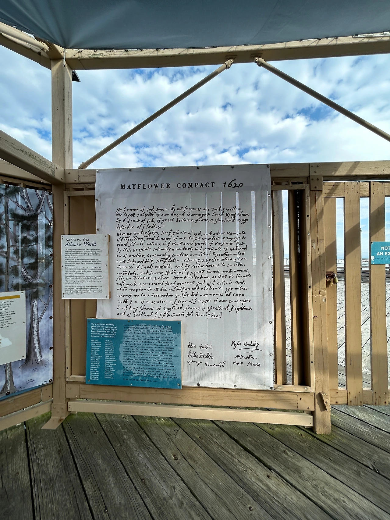 앞 장에서도 언급했듯이 메이플라워호는 태풍 때문에 항로를 크게 벗어나 당초 영국 왕실이 칙허 한 땅인 버지니아 제임스타운에 도착하지 못하고 훨씬 북쪽인 케이프 코드에 도착하고 말았다. 제임스타운으로의 항해를 계속할지 논의가 분분했으나 2개월에 걸친 긴 여정과 추운 겨울이 닥쳐왔기 때문에 프로빈스타운에 상륙하자는 결의안이 제출되었다.