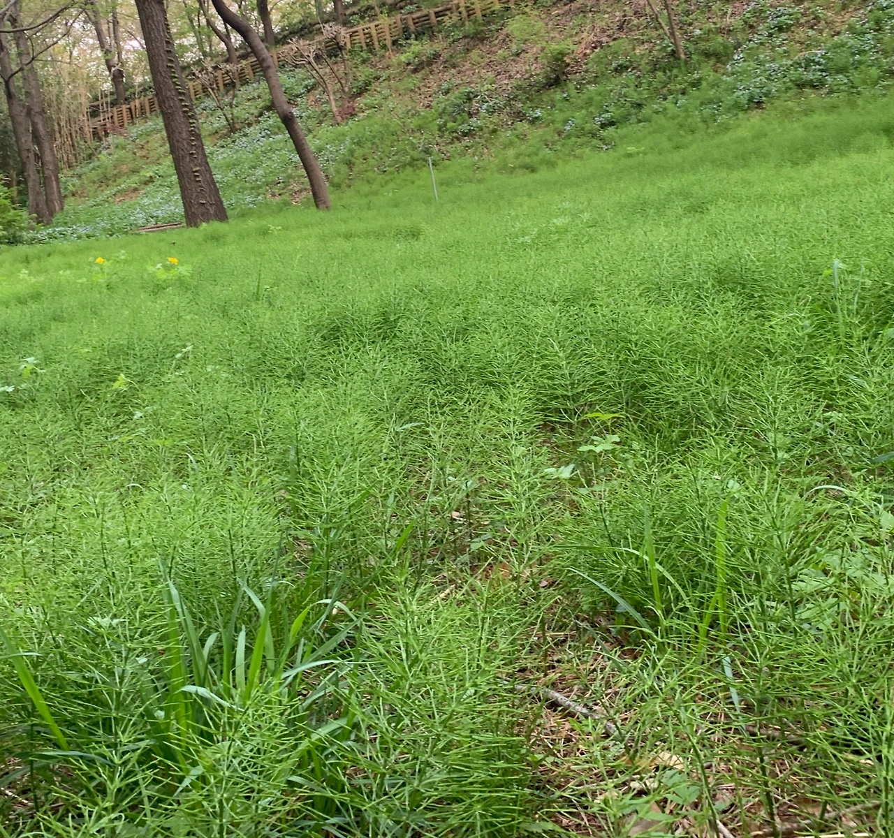 그런데 땅바닥에 새파랗게 자라 있는 쇠뜨기 풀이 눈에 들어왔다. 아뿔싸! 내가 방치한 지난 3개월 동안 쇠뜨기 풀들이 또 마음껏 자랐구나!