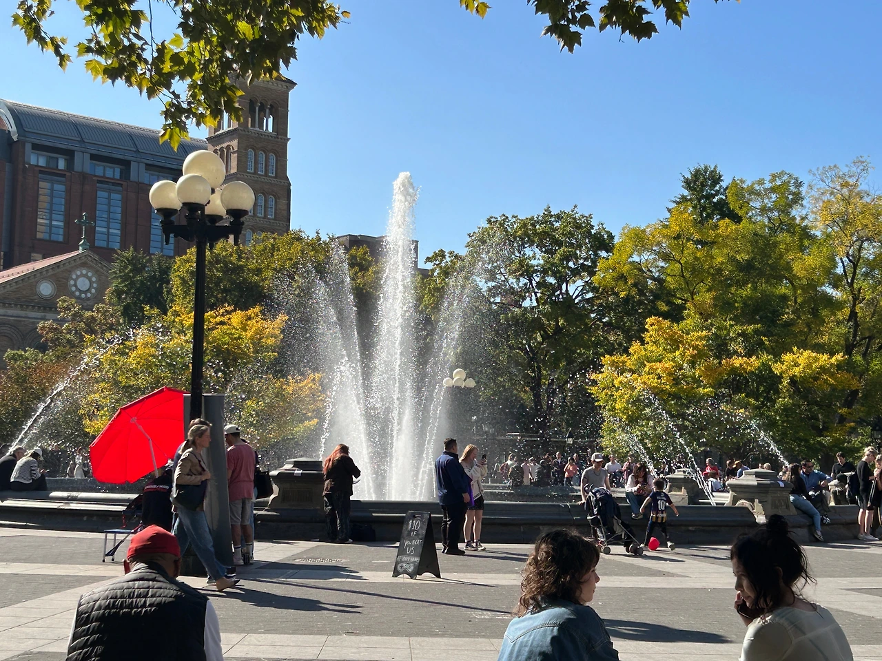어느 일요일 점심 무렵 워싱턴 광장 공원(Washington Square Park)으로 산책을 나갔다. 10월의 맑고 온화한 날이었다. 맨해튼에는 센트럴파크로 대변되는 엄청난 공원 외에도 여러 소규모의 아름다운 공원들이 있다. 남편과 내가 뉴욕에 있을 때 그랜드 센트럴역 근처의 호텔에 잠시 머물렀기 때문에 시간이 있을 때마다 근처의 작은 공원들을 즐겨 방문하였다. 그중의 하나가 워싱턴 광장 공원이었다.
