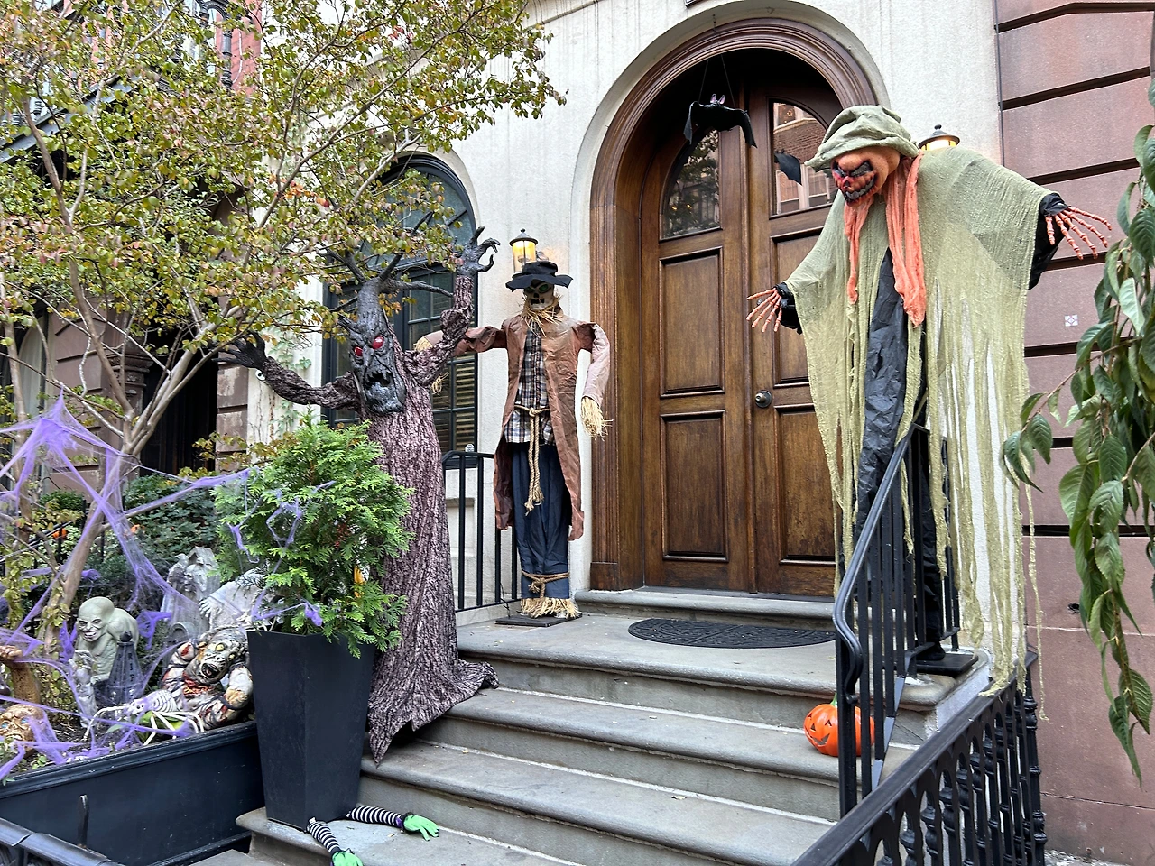 워싱턴 광장 공원은 뉴욕의 그리니치 빌리지(Greenwich Village)에 있다. 참고로 그리니치 빌리지는 맨해튼의 남서부에 위치한 지역이다. 가로에는 석조의 아름다운 집들이 즐비해 있고, 허니 로커스트(honey locust)의 가로수가 한창 노랗게 단풍이 들고 있어 고풍스러우면서도 이국적인 분위기가 느껴졌다. 한창 핼러윈데이의 시점이라 집 앞마다 요괴들이 장식되어 있는 모습이 이방인의 눈에는 기괴하게 보였다.