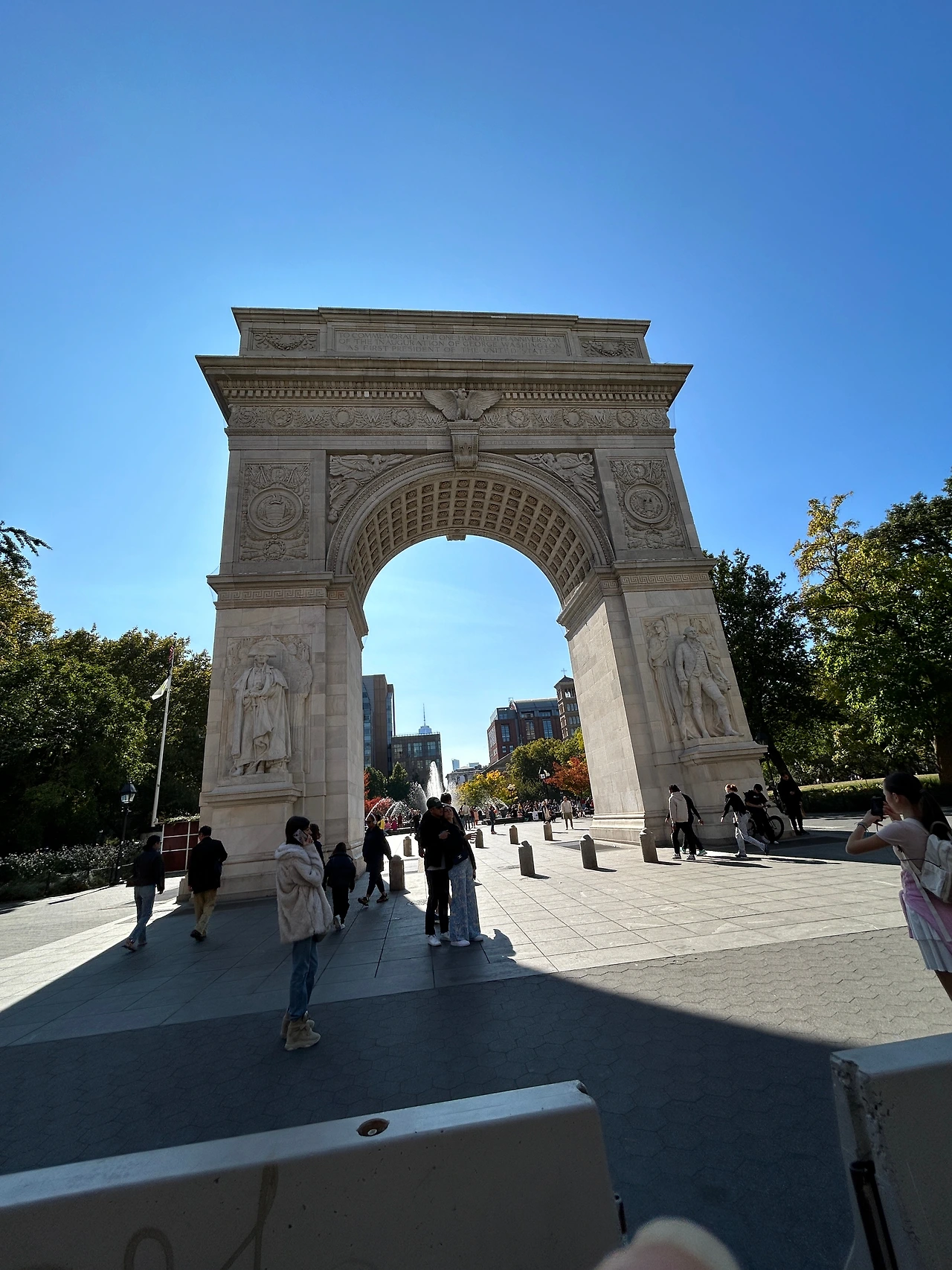 나는 워싱턴 광장이 죠지 워싱턴을 기념하는 공원일 것이라고 짐작은 하였지만 이렇게 멋진 아치와 죠지 워싱턴의 부조가 세겨져 있는 줄은 미처 몰랐었다. 알고 보니 이곳은 미국 독립전쟁의 영웅이자 초대 대통령이었던 죠지 워싱턴과 미국의 독립운동 정신을 기념하려고 그의 취임 100주년이었던 1889년에 조성한 공간이라고 한다.