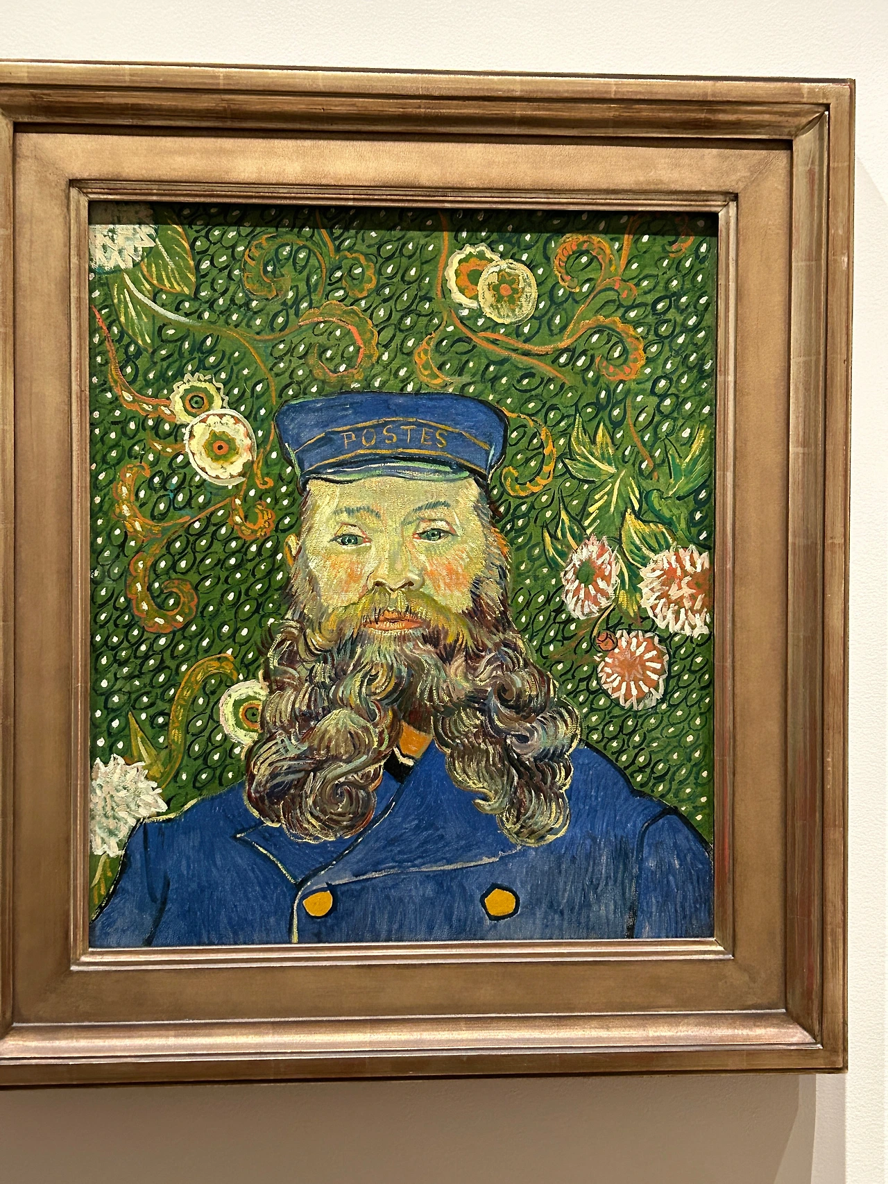 나는 여섯 점의 룰랭의 초상화 중 MoMA에 있는 이 그림이 가장 아름답다고 생각한다. 그런데 아름다운 그림을 보면서도 마음은 슬펐다. 고갱도 떠나고 그의 유일한 친구인 룰랭마저 떠나게 되었으니 친구 초성화의 배경에 꽃을 그려 넣는 고흐의 마음이 얼마나 고통스러웠을지가 느껴졌기 때문이다.