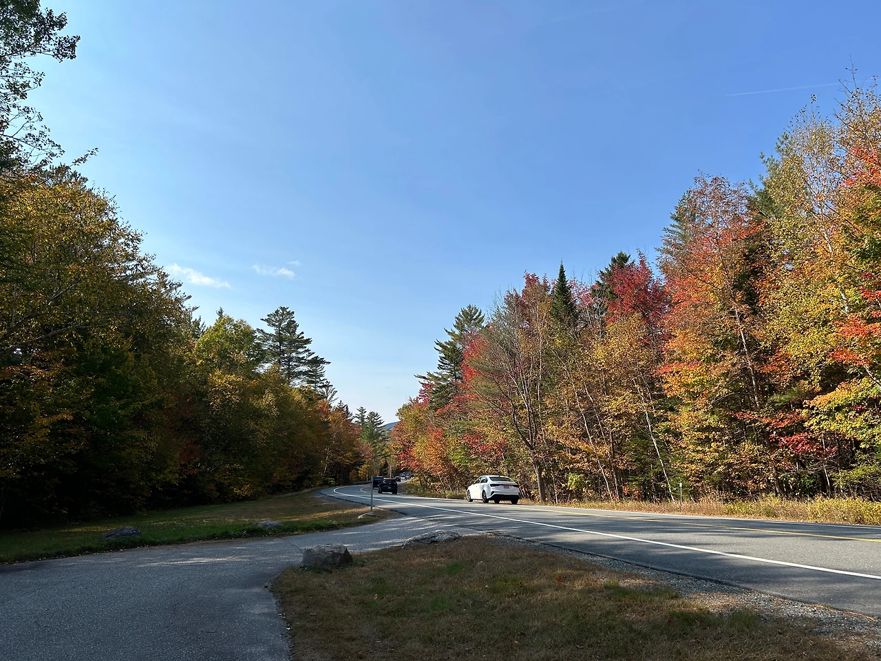 숙소에서 플룸 고지로 향하는 대니엘-웹스터 하이웨이(Daniel Webster Highway)의 주변으로 단풍이 물든 멋진 풍광들이 지나갔다. 나는 감탄을 연발하며 사위에게 천천히 가자고 졸랐다. 차들도 많지 않아 느긋하게 만산홍엽의 풍경을 즐길 수 있었다. 이제야 말로 단풍나라에 온 것이 실감이 났다.