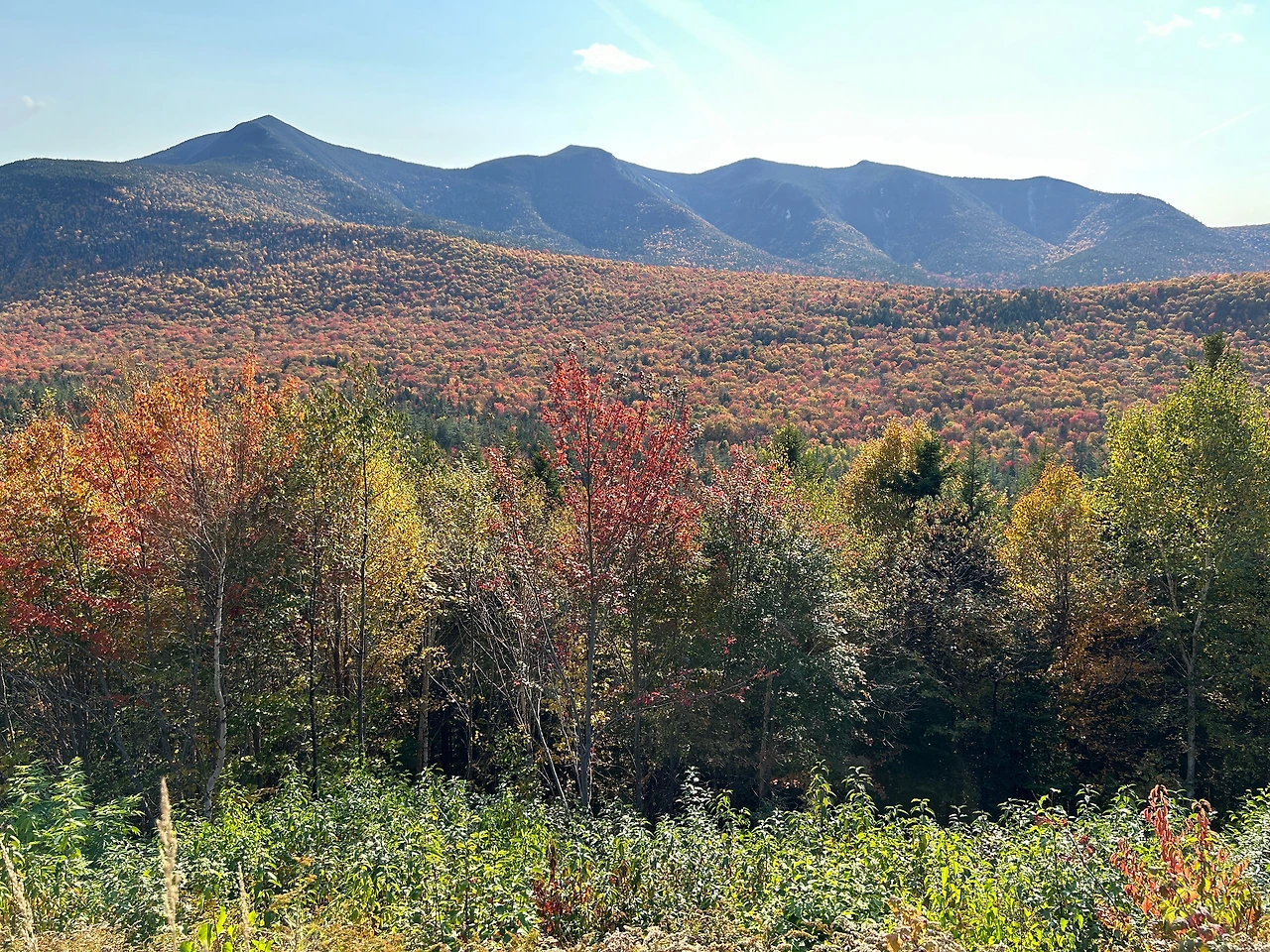 멀리 Mt. Liberty와 Mt. Flume의 모습이 병풍을 두른 듯 보이고 맑은 가을 하늘 아래로 만산홍엽이 가을 잔치를 벌이고 있었다.