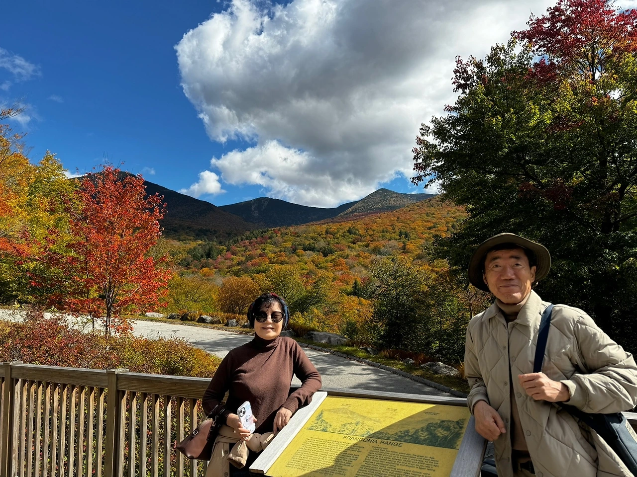 미국에 도착하자마자 딸 내외가 뉴햄프셔(New Hampshire)로 단풍 구경을 가야 한다고 서둘렀다. 한숨이라도 돌리고 어디든 갔으면 좋으련만 딸은 단풍이 기다려주지 않는다면서 미국에 막 도착한 우리를 재촉하였다. 미국 동부 지역은 단풍이 좋기로 유명하고 그중에서도 단풍이 가장 빨리 오는 곳이 뉴햄프셔라고 하였다. 그리고 지금이 가장 좋은 단풍철이라는 것이었다. 짐도 제대로 풀지 못한 채 딸 내외를 따라나섰다.