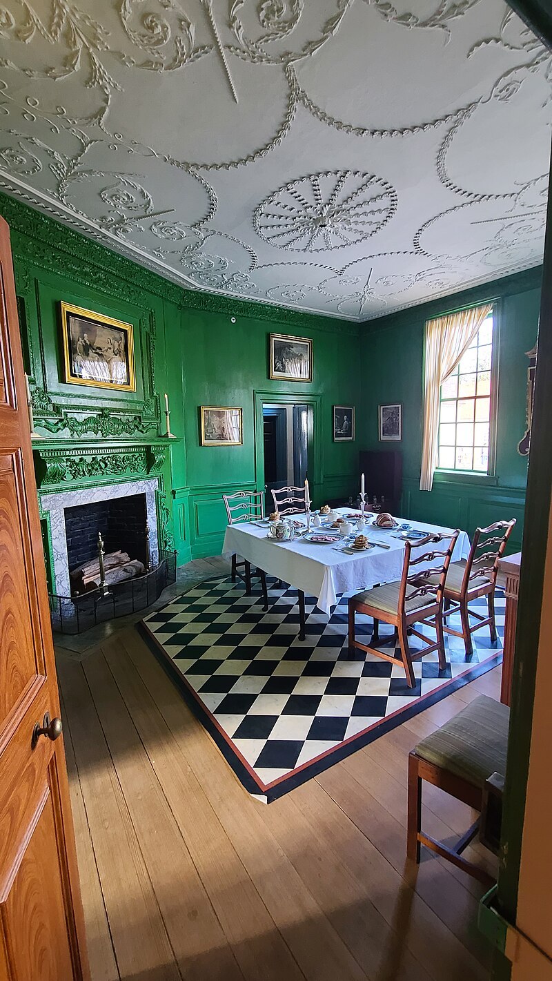 초록색 벽으로 칠한 다이닝 룸이 특히 아름다웠다.
