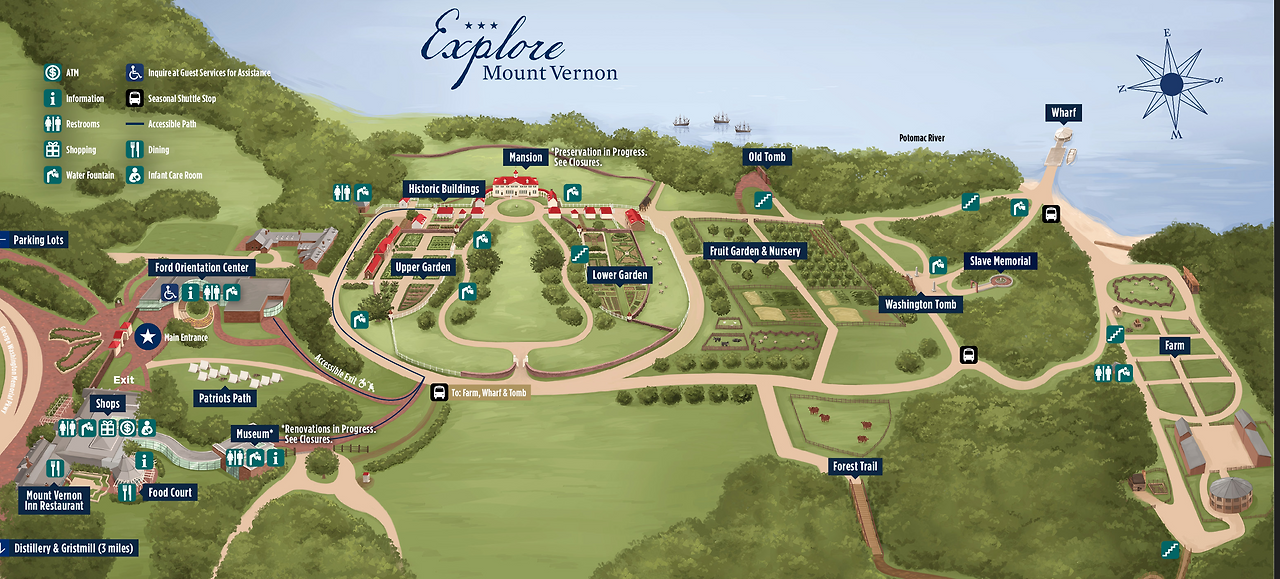 마운트 버논(Mount Vernon)은 미국의 초대 대통령이었던 조지 워싱턴(George Wasgington)이 살던 곳이다. 조지 워싱턴은 미국 독립전쟁에서 대륙군 총사령관으로 활동하였고 초대 미국 대통령으로 당선되어 미국 정부의 기틀을 세운 사람이다. 미국인들이 가장 존경하는 인물 1순위에 조지 워싱턴 대통령의 이름을 올린다. 그의 이름은 워싱턴 D.C. 를 포함하여 워싱턴 주(Washington State) 같은 주의 이름에도 남아있고, 대학 이름(George Washington University), 도로 이름(George Washgington Memorial Parkway), 건물 이름(Federal Hall National Memorial) 및 수많은 거리, 공공시설 등 수백 곳에 남아있다. 미국인들이 국부로서의 그를 얼마나 존경하고 있는지 단적으로 나타내는 예라고 할 수 있다.