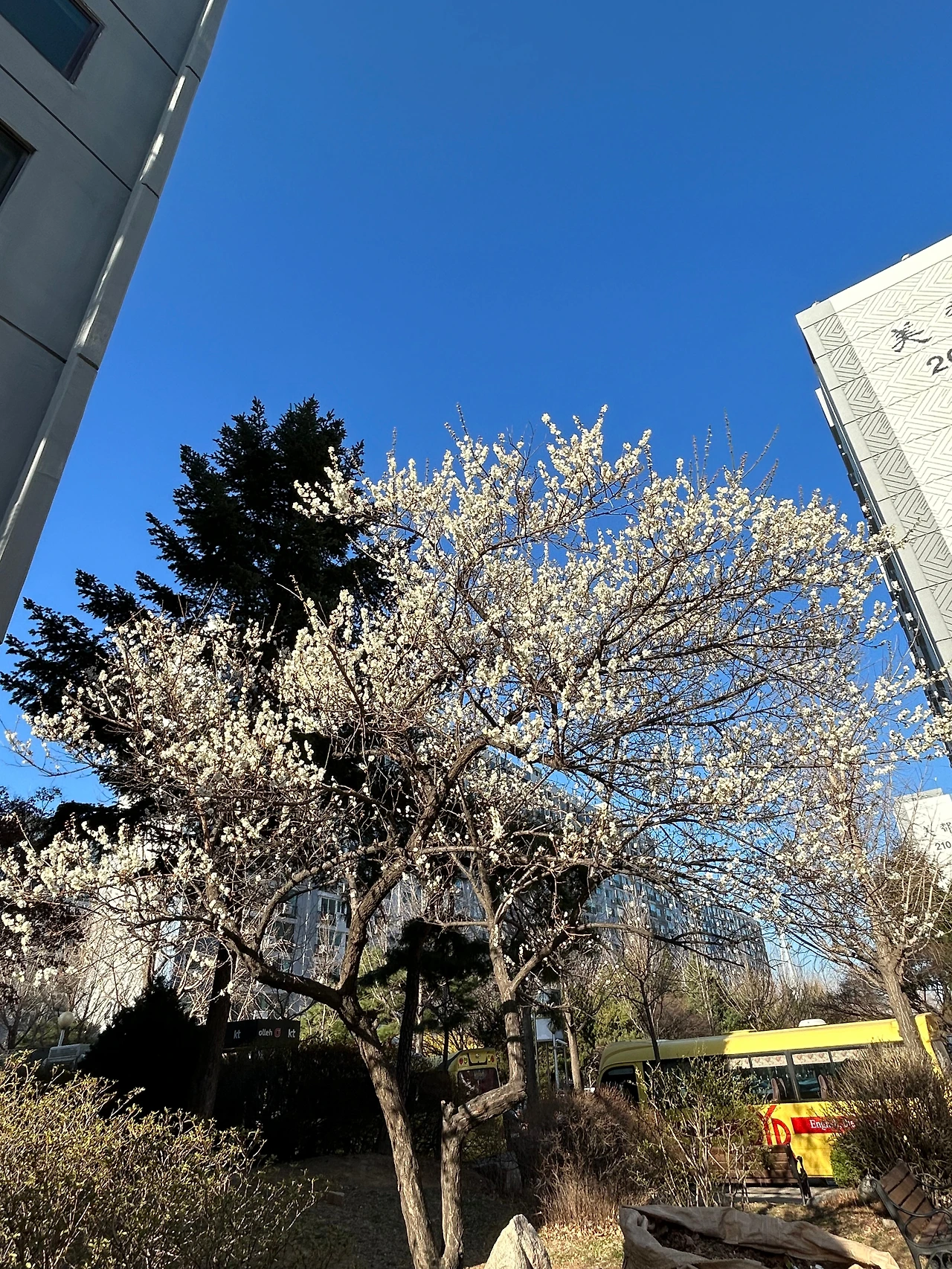 다행히 우리 아파트에는 백매와 청매, 홍매가 다 있다. 2월에 접어들면 매화가 피었는가 하고 지나갈 때마다 나무를 쳐다보게 된다. 백매가 먼저 꽃망울을 터뜨리고 이어서 청매가 피고 마지막으로 홍매가 꽃잎을 터뜨린다.