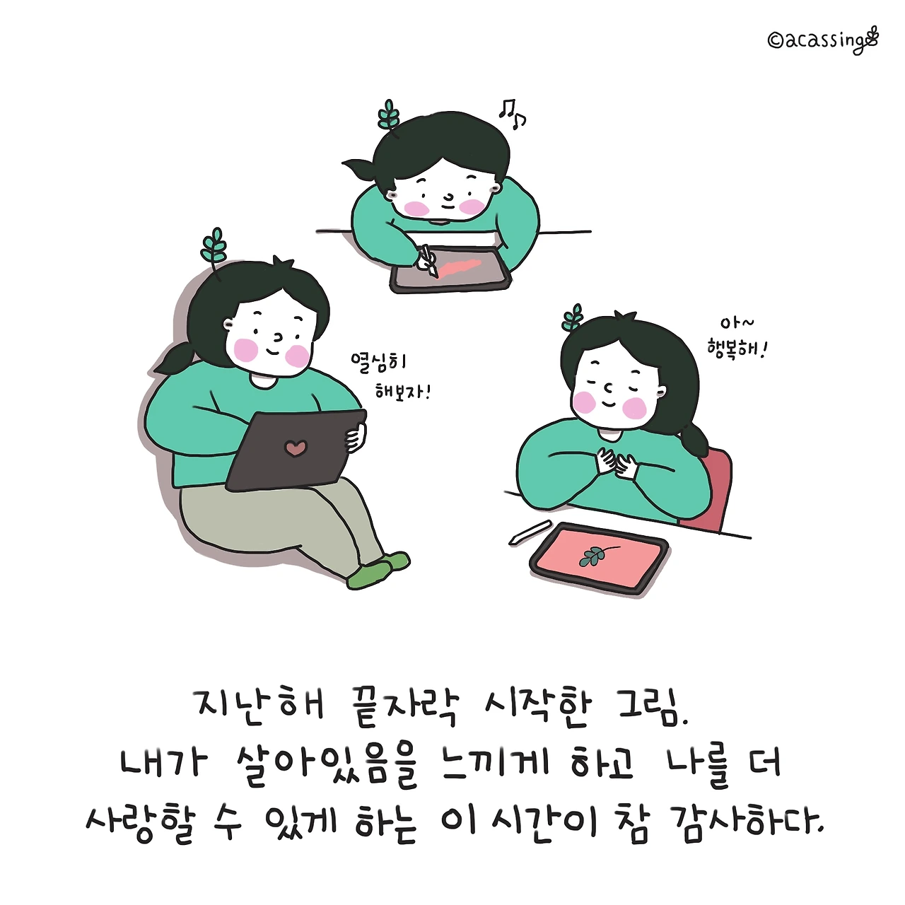 지난해 끝자락 하기로 마음먹은 그림. 내가 살아있음을 느끼게 하고 나를 더 사랑할 수 있게 하는 이 시간이 참 감사하다. 꾸준히 이 시간을 아껴주며 소중히 다뤄서 나를 더 사랑해 주고 싶다. 그래서 마음먹은 나의 새해 다짐은 두 볼이 꾸준히, 더 사랑스럽게 빨개질 수 있도록 열심을 다하는 것. 그래서 나를 더 아끼고 사랑해 주는 것. 소박하지만 쉽지 않을 단단한 마음을 먹으며오늘 하루도 그렇게 시-작.