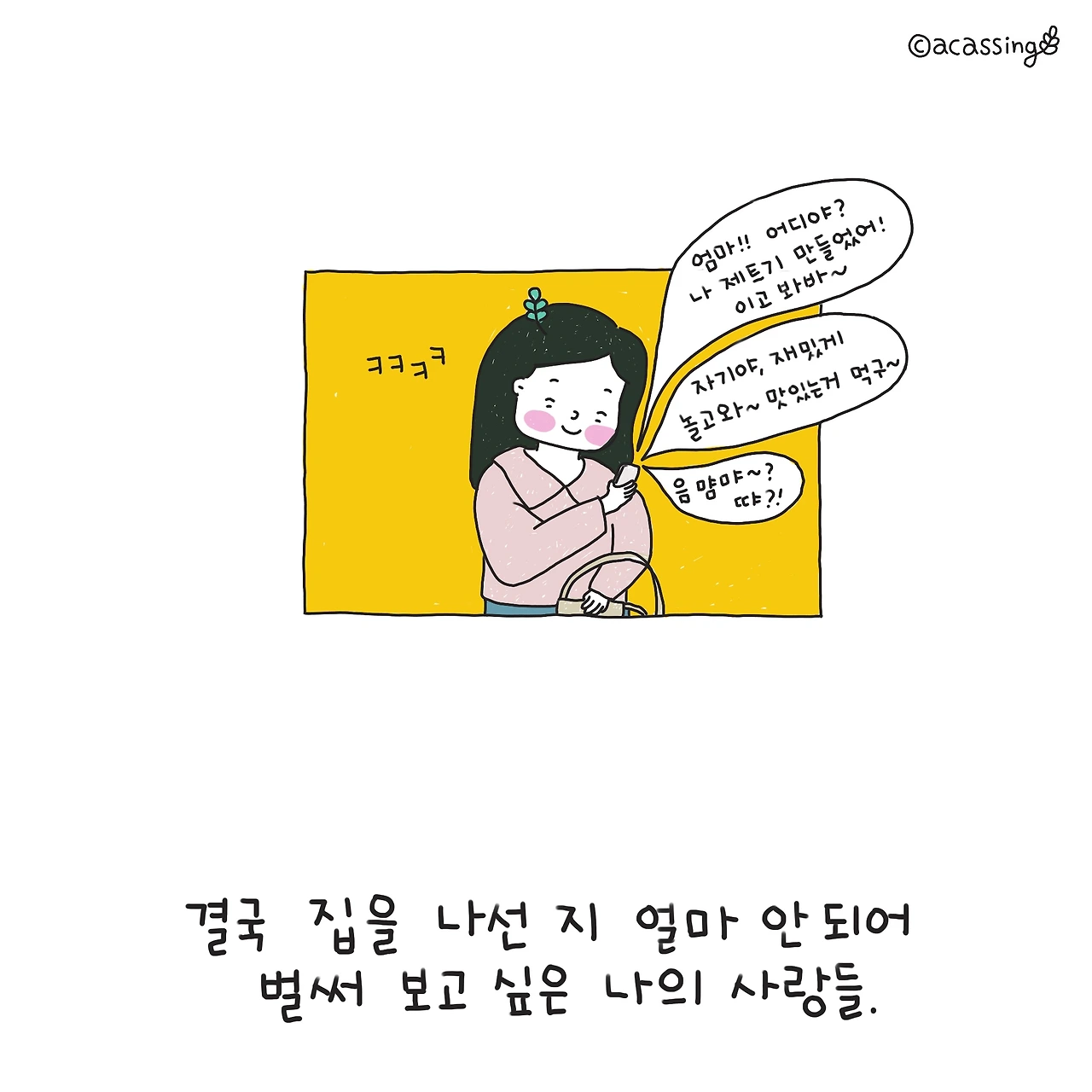 간만의 자유는 늘 설레고 좋지만, 함께 붙어있던 사랑스러운 존재들을 떼어놓고 만끽하는 자유가 어쩐지 어색하다.