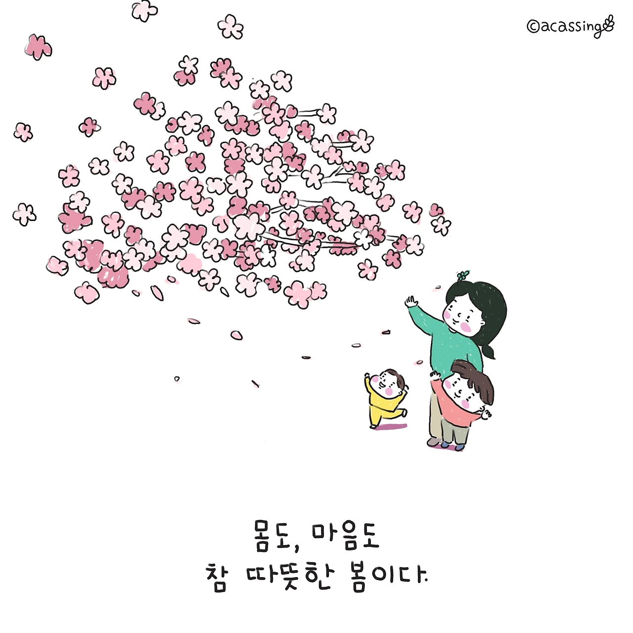 오늘도 하원 후 아파트 화단을 헤집고 돌아다니며 신날 아이가 그려진다. 색색 꽃들이며 곤충들이며 발견할 때마다 엄마를 목청껏 부르겠지. 그럴 아이를 생각하니 피식 웃음이 난다. 그렇게 봄의 따뜻함을 마음으로 전해받는 요즘, 누구보다도 봄을 제대로 만끽하고 있다.