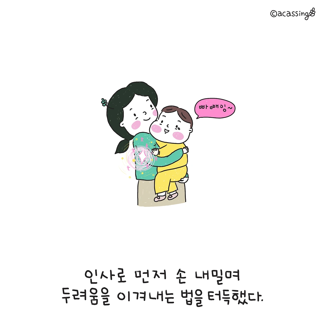 아이는 세상이 아직 무섭지만, 생각보다 밝고 기분 좋은 곳이란 걸 조금씩 깨달아 가고 있다.그 마음을 북돋아 주기 위해 좋은 경험들을 차곡차곡 함께 쌓아가고 싶다. 그리고 이렇게 얘기해주고 싶다. 지금의 낯설고 무서운 너의 마음이 잘못된 것이 아니고 다만 조금은 다르게 볼 수 있는 힘이 생길 수 있게 함께 나아가보자.