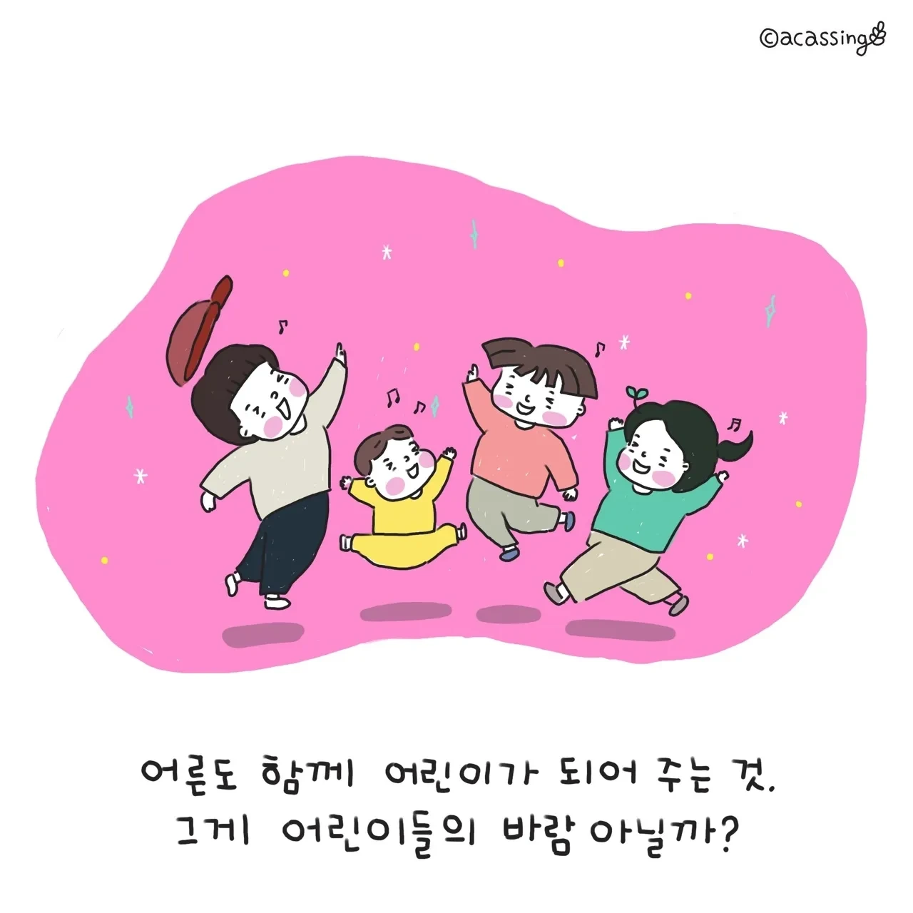 그래, 우리도 한때 어린이였다. 그럼에도 아이에게 점잔 떨며 어른인 척 얼마나 선 그었던가. 그만 좀 하라고 얌전히 있으라고 우리 집 어린이에게 예의 없게 굴었던 일들을 생각하니 미안한 마음이 든다. 잔소리 없이 아이들의 세상을 있는 그대로 인정하고 어른도 함께 어린이가 되어 그 세상을 즐기는 것. 어린이의 바람은 그거 아닐까?