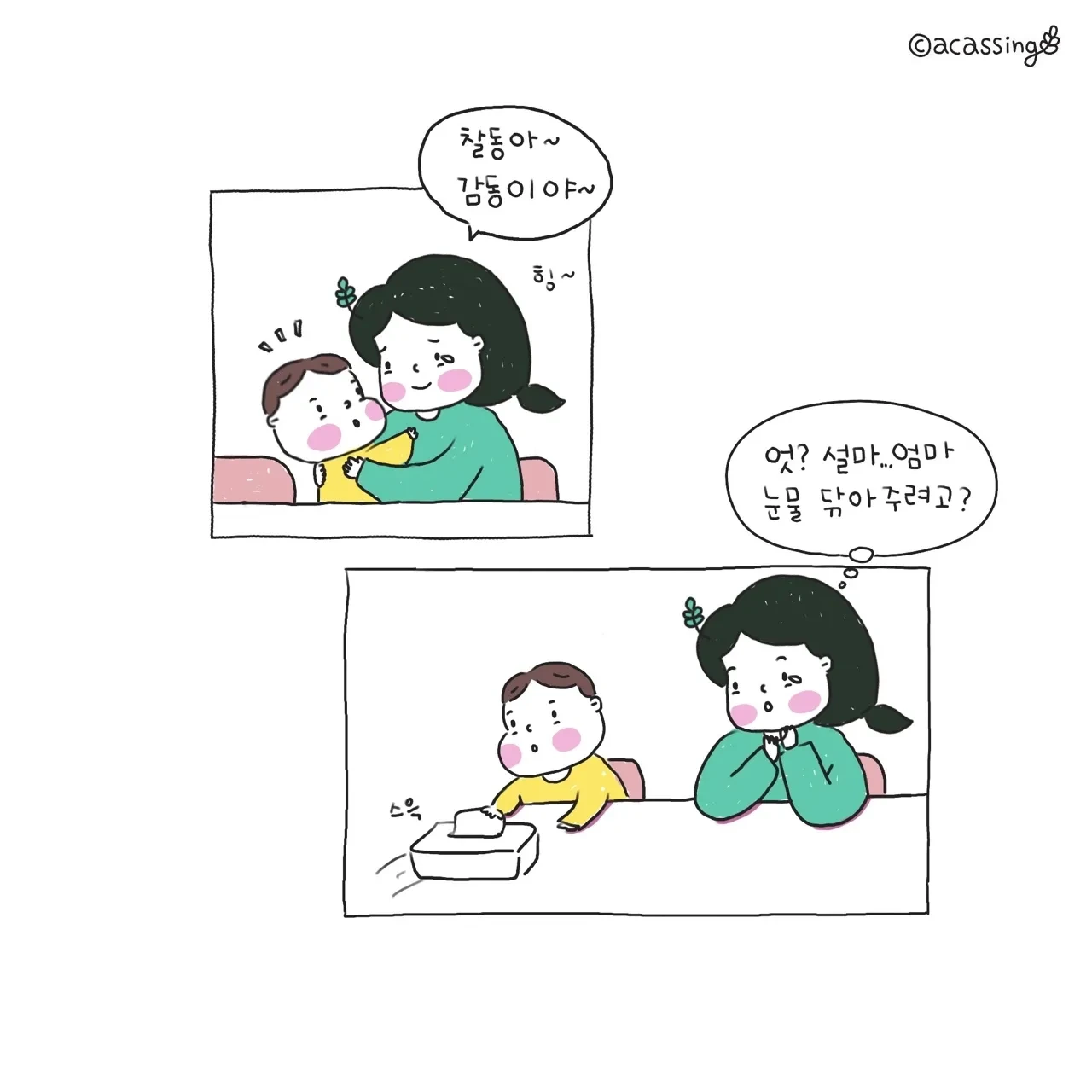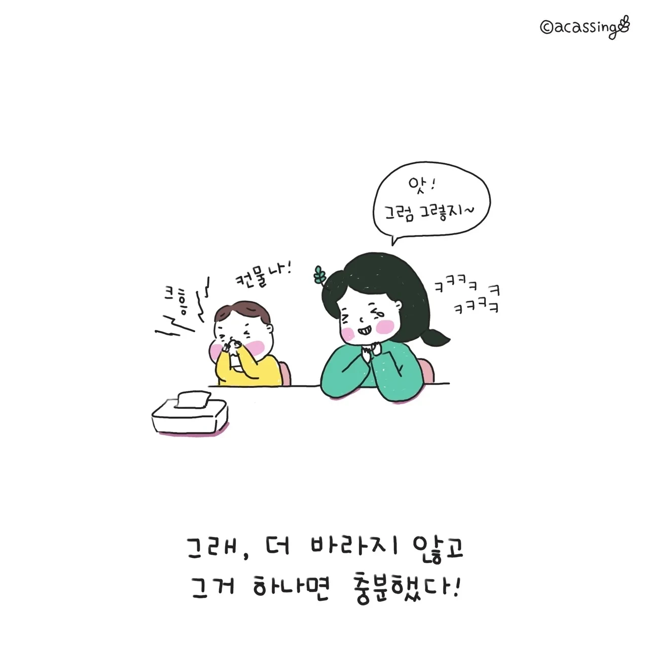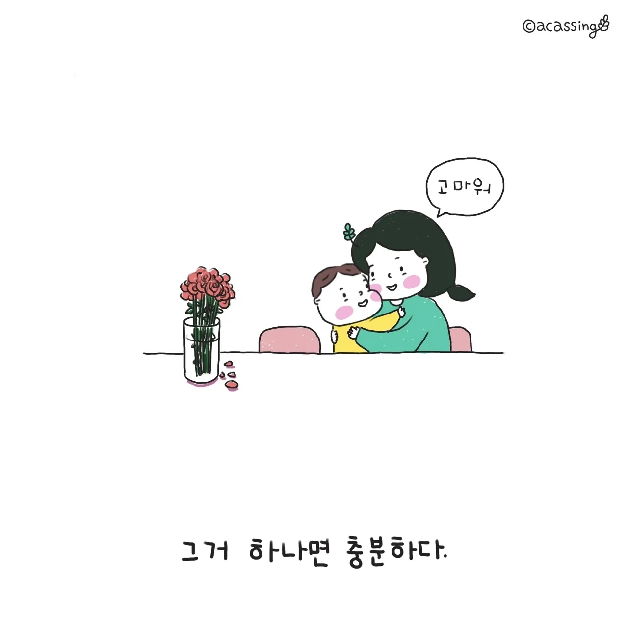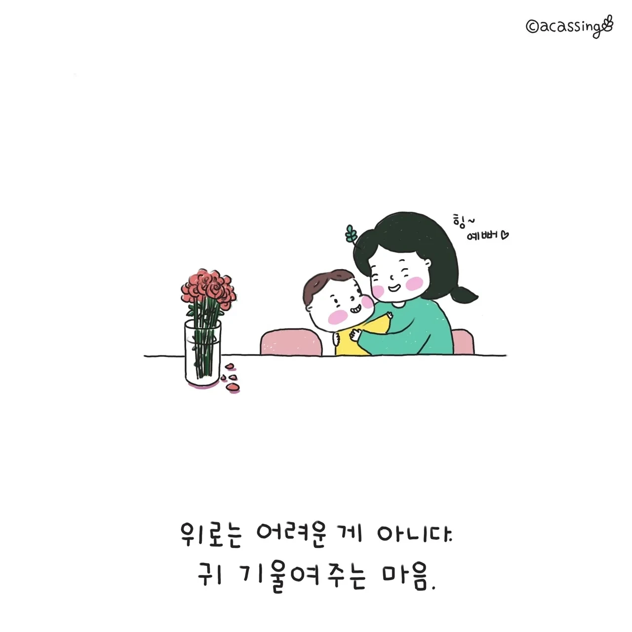 따스한 관심, 그 마음이 나에게 얼마나 큰 위로가 되었는지 알려주려고 아이 귓가에 고마워 고마워 속삭여 주었다. 작은 관심의 온기가 나에게 닿았듯 나의 고마움이 진하게 아이에게 스며들길. 서로의 마음이 위로가 되어주길 바라본다.