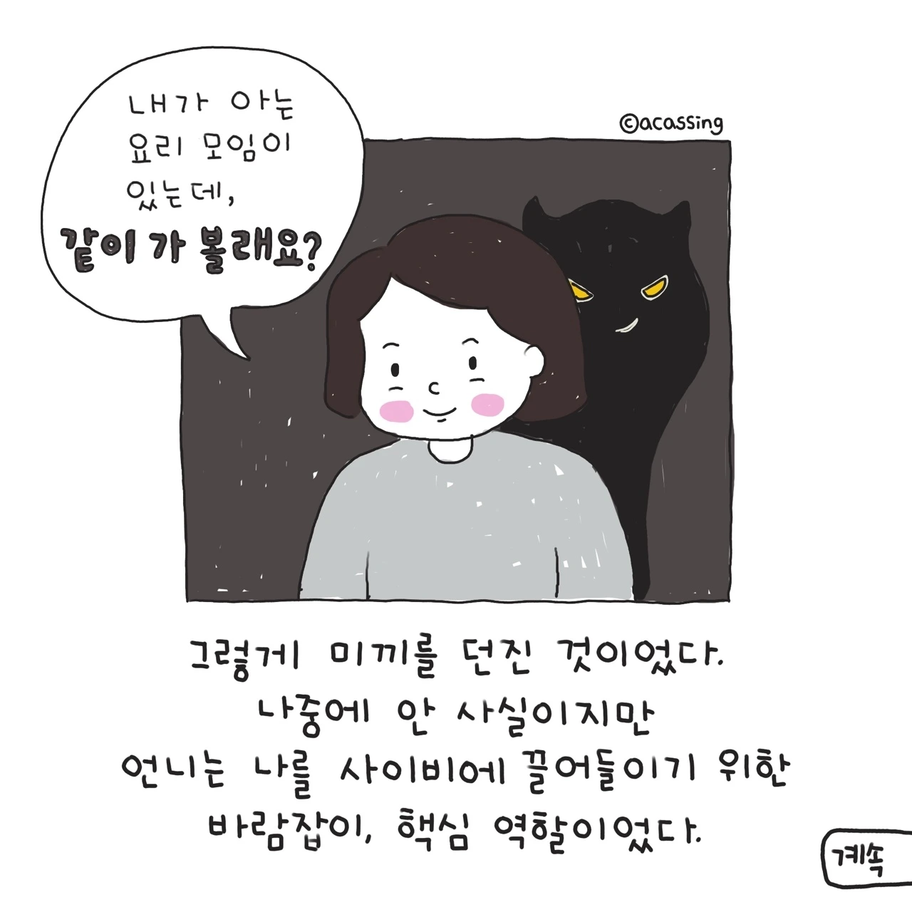나에게 건네는 제안이 다른 곳으로 끌어들이기 위한 속셈이라는 사실을 어떻게 눈치챌 수 있었을까? 그때의 내가 안타깝지만, 다시 이때로 돌아간다 해도 난 모를 것 같다.