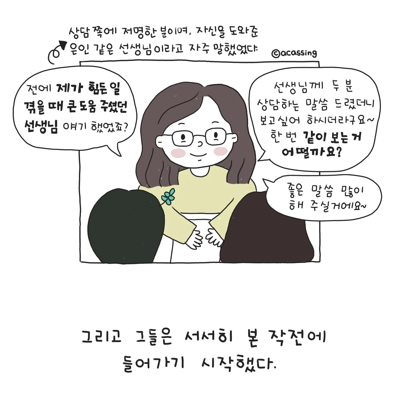 이상했다. 상담을 하고 난 후나 그들과 만남 이후에 혼자 남겨진 마음은 늘 개운치 않았다. 알 수 없는 일이었다. 사람 만나는 것에서 오는 피로감 때문인가 보다 했다. 내 체력을 탓하며 감정을 꾹꾹 눌러두었다. 마음 깊숙한 곳에서 알 수 없는 무거움, 그 묘한 버거움을 그제야 알게 됐다. 모든 상황을 이성적으로 인식하기 이전에 신기하게도 마음이 먼저 알아보았던 것이다.