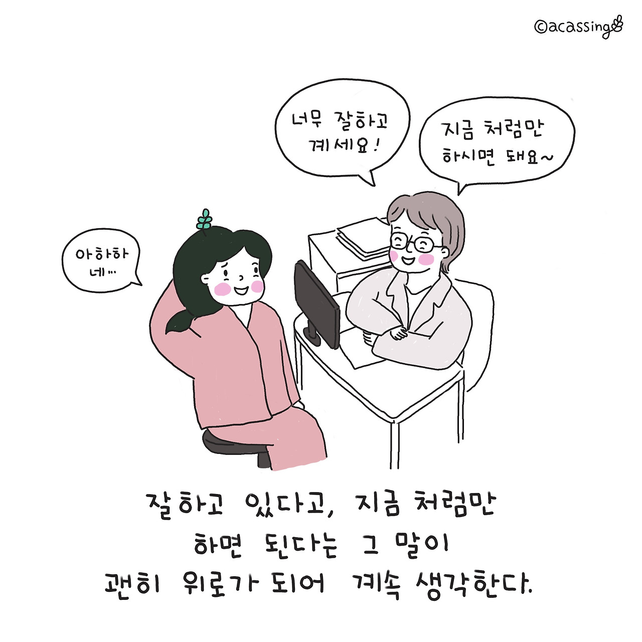 잘하고 있어, 지금처럼만 하면 된다라는 그 말이 마음에 선명해진다.