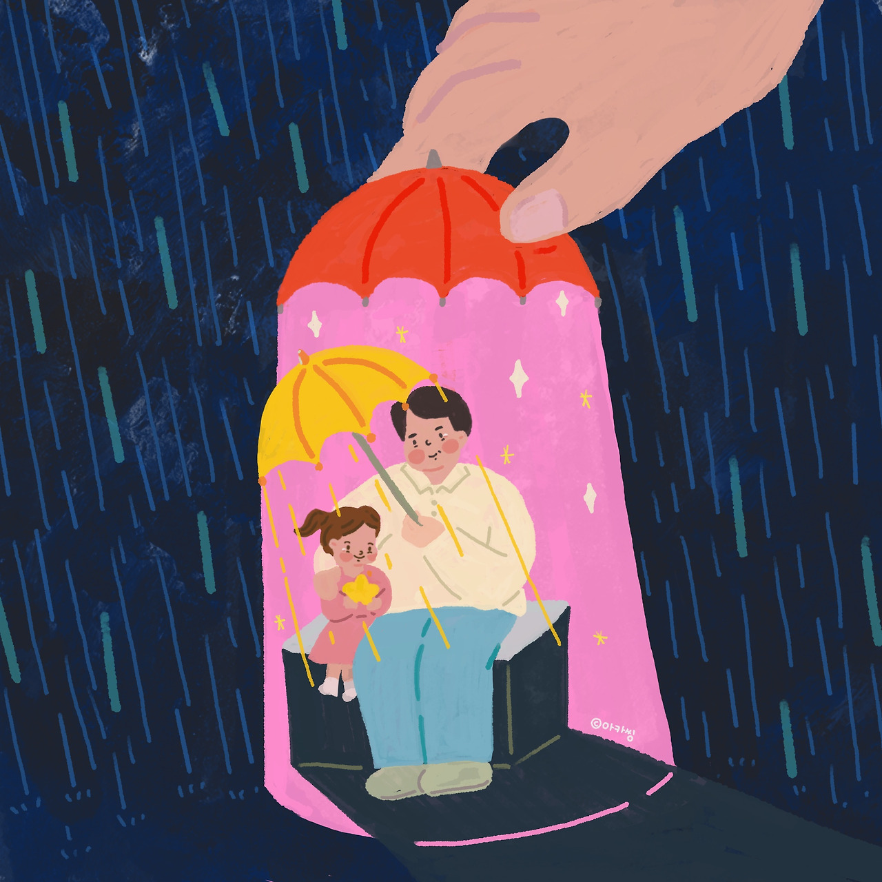 내가 부모가 되고 보니 부모로서 마음이 얼마나 요동쳤을지 알 것 같다. 어린 자식이 슬픔의 빗속에서 훌쩍이는 걸 보는 부모 마음이 오죽할까. 부모는 자식이 홀딱 젖지 않도록 기꺼이 우산을 내준다. 슬픔의 비에 자신이 젖을지언정 자식에게만은 언제나 기댈 수 있는 든든한 버팀목이 되기 위해 애쓴다. 아무리 슬퍼도 들키지 않게 뒤돌아 눈물 훔칠 것이다. 문도 아마 그런 마음이었으리라. 어린 딸 몰래 눈물 훔치던 그때의 문을 안아주고 싶다.