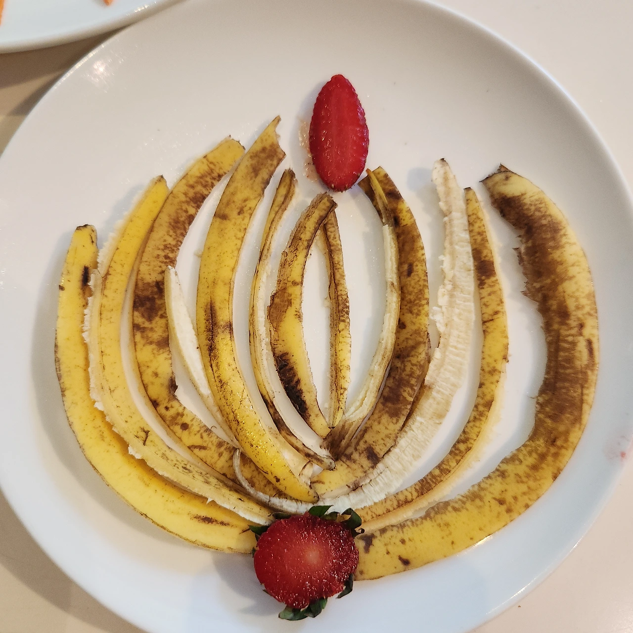 바나나 껍질을 펼치니