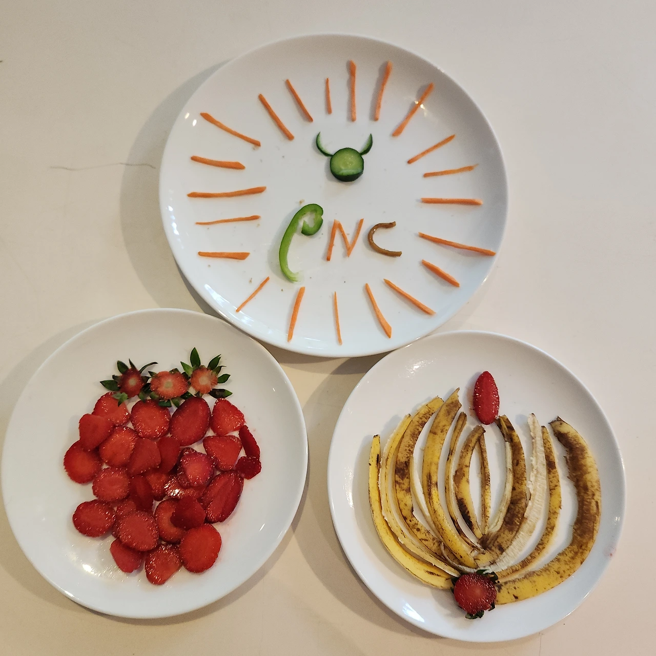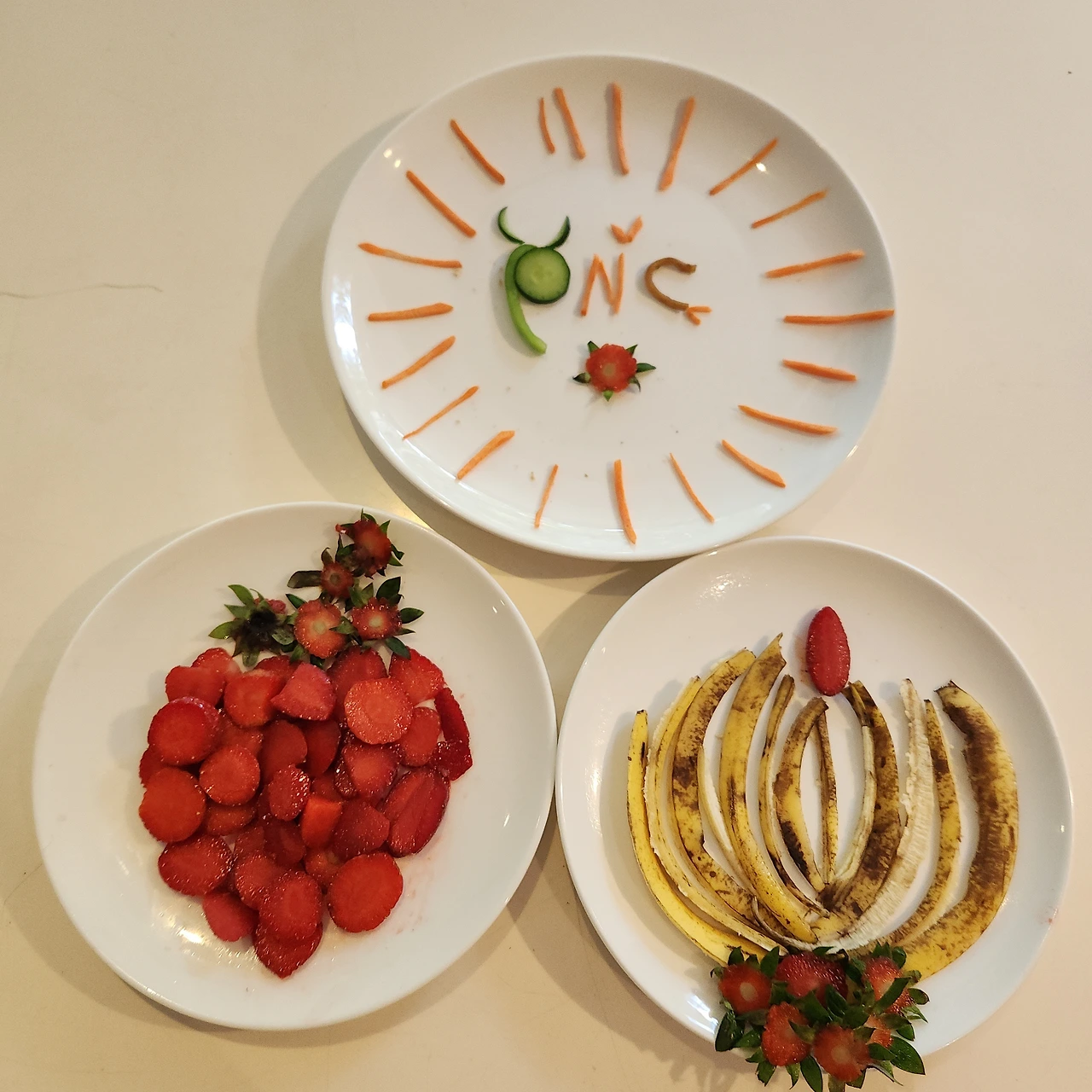 딸기, 바나나, 오이, 당근