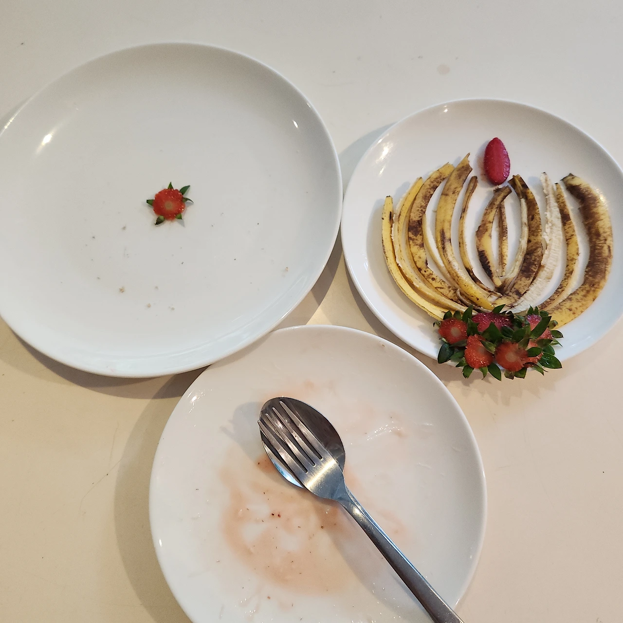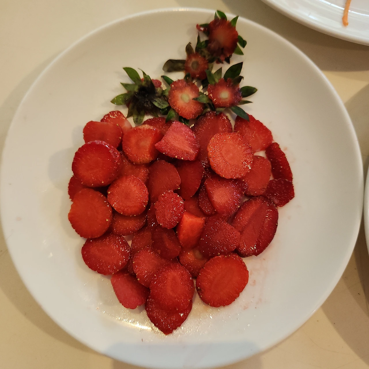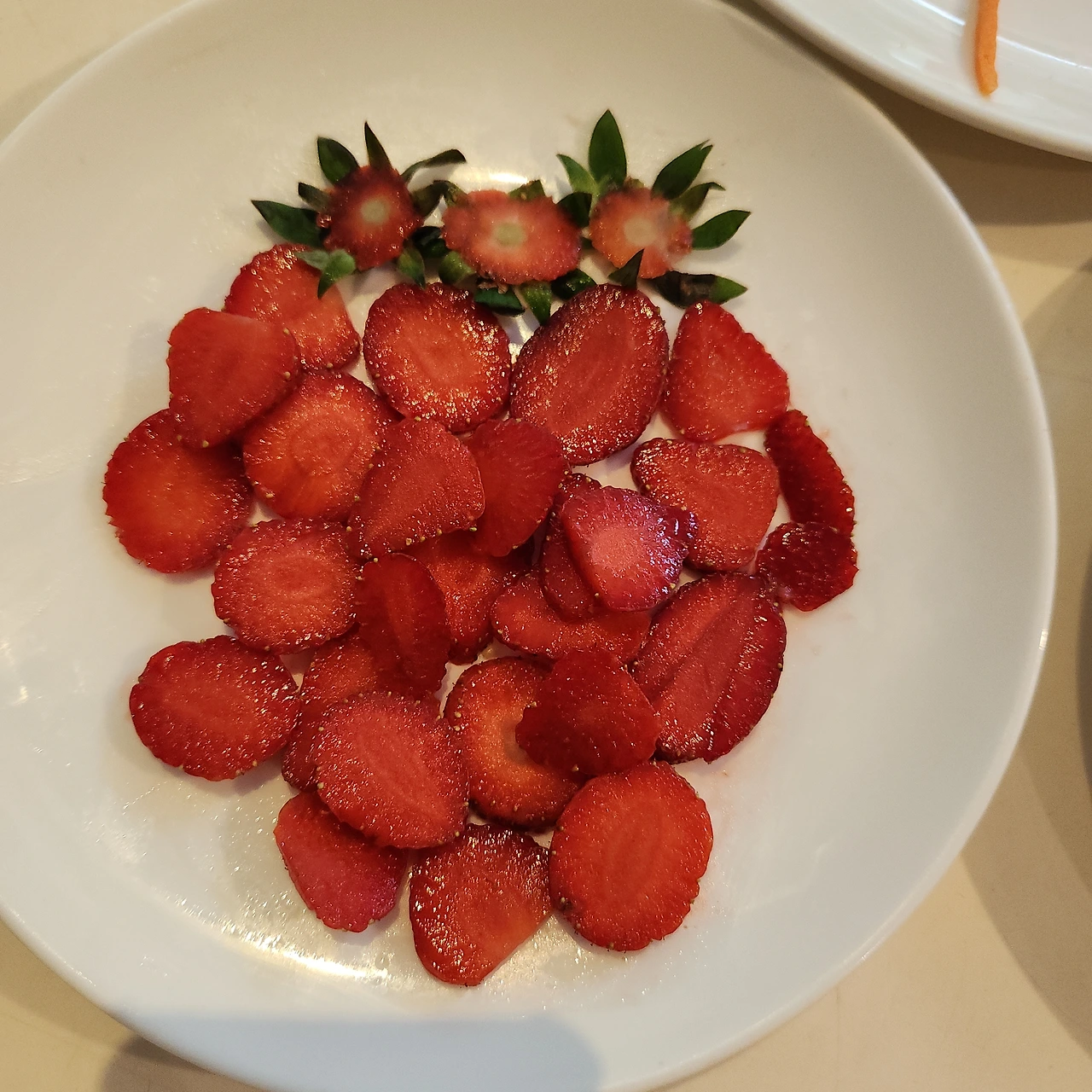 딸기 조각들을 동글동글 모아놓으니