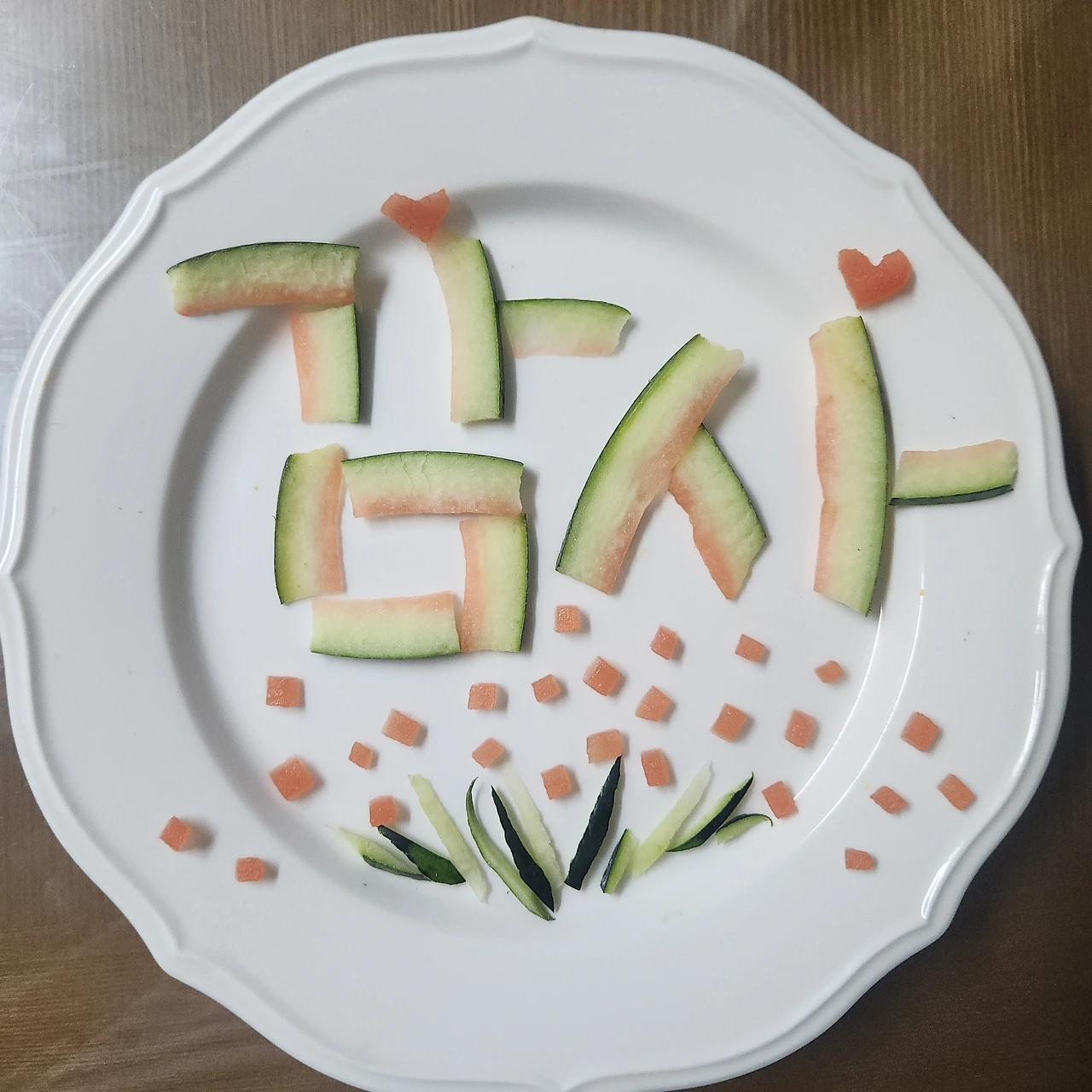 '감사'라는 글자를 접시에 놓았고,