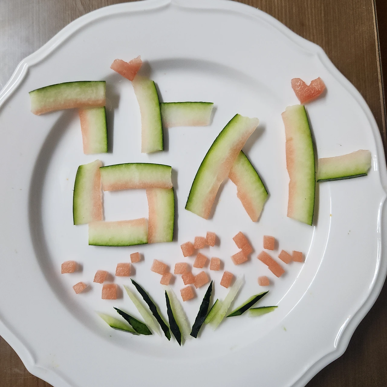 수박 껍질의 자연 색감 위에 정성스레 새긴