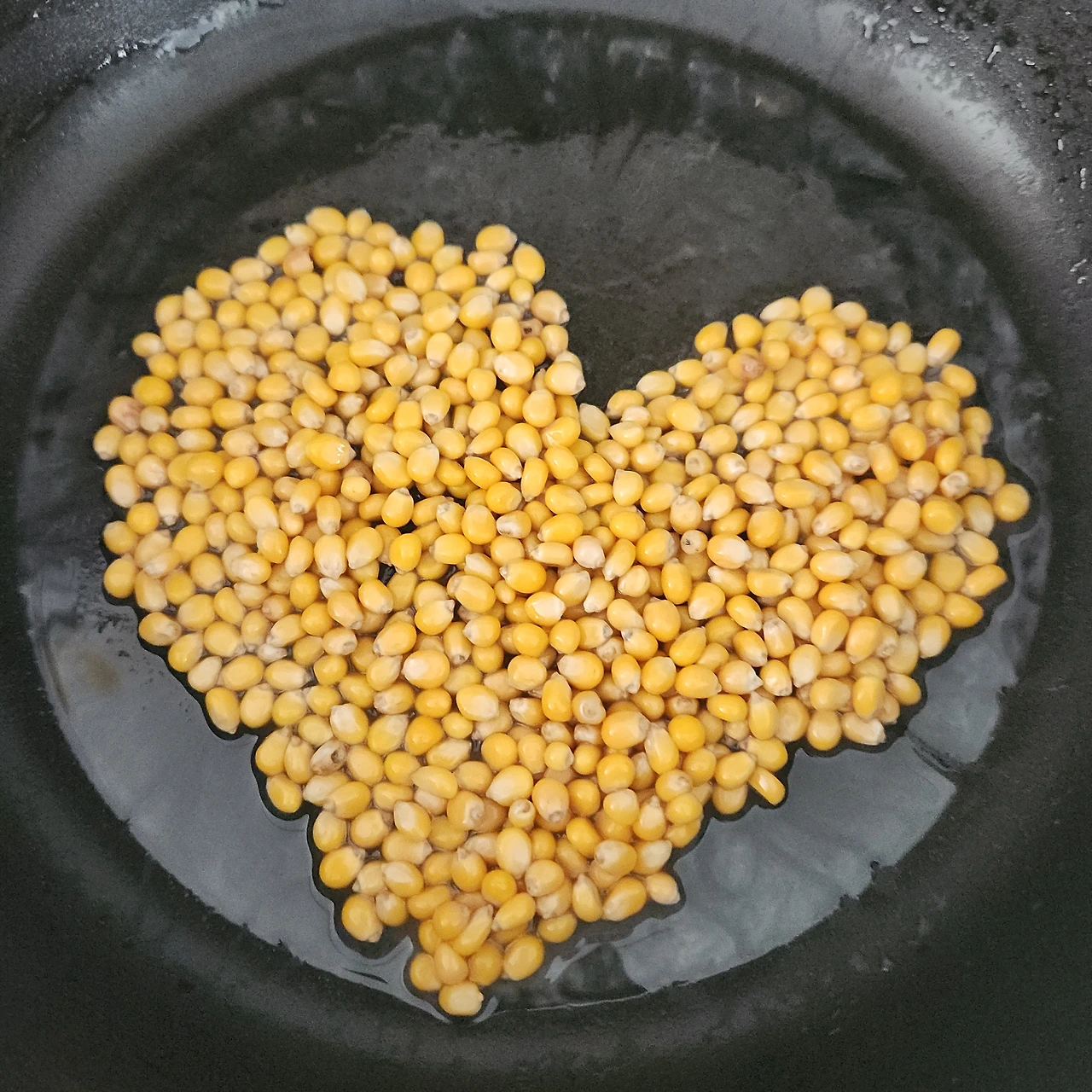 노란 옥수수알을 하트 모양으로 펼쳐 놓았습니다.