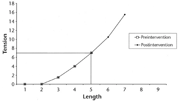 2) 근육이나 다른 조직의 뻣뻣함(stiffness - 길이에 따른 장력) 감소, 혹은 순응력(compliance - 장력에 따른 길이) 증가, 그리고 이론적으로 이를 통해 부상의 위험을 줄이는 것.