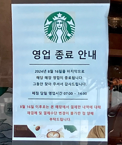 영원이란 건 없지만, 영원할 것 같았던 스타벅스 단골 지점이 문을 닫았다.
