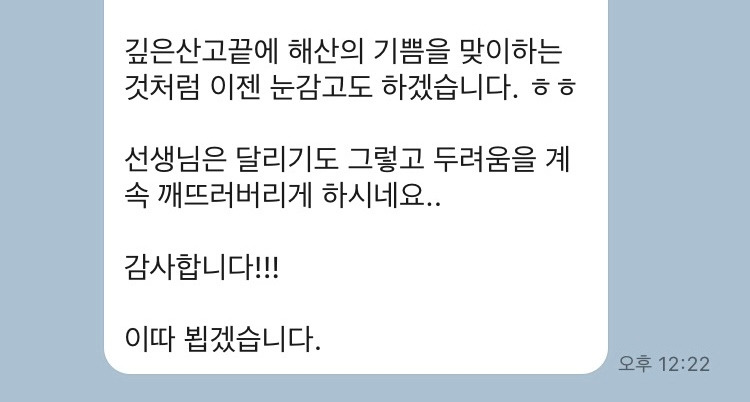 지금까지도 수업을 하고 있는 회원님 예시입니다.