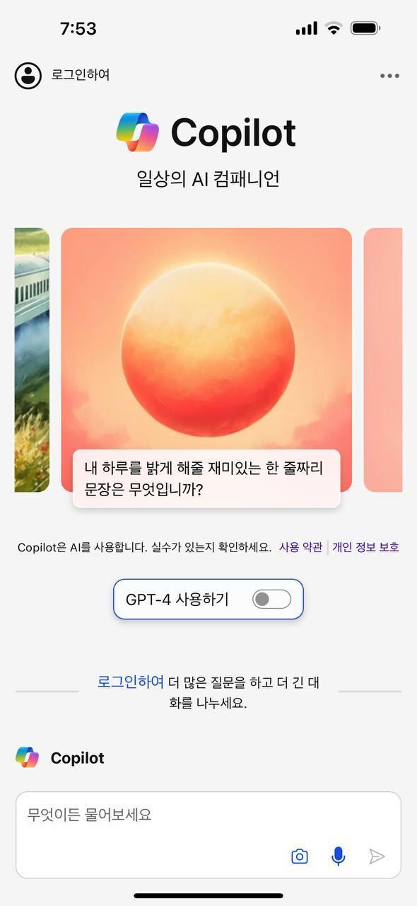 Copilot은 Microsoft가 2023년 3월에 출시한 인공지능(AI) 기반의 서비스로, 사용자의 작업을 지원하고 생산성을 향상시키기 위해 설계되었습니다. 생성형 AI의 한 종류로 GPT-4 모델을 사용하여 텍스트, 이미지, 동영상 등 다양한 종류의 콘텐츠를 만들 수 있습니다. 이 서비스는 방대한 양의 기사, 책, 웹 페이지 및 기타 공개적으로 사용 가능한 텍스트를 학습하여 질문에 응답하고, 기사와 문서를 요약하고, 이미지를 생성하는 등의 작업을 수행할 수 있습니다.