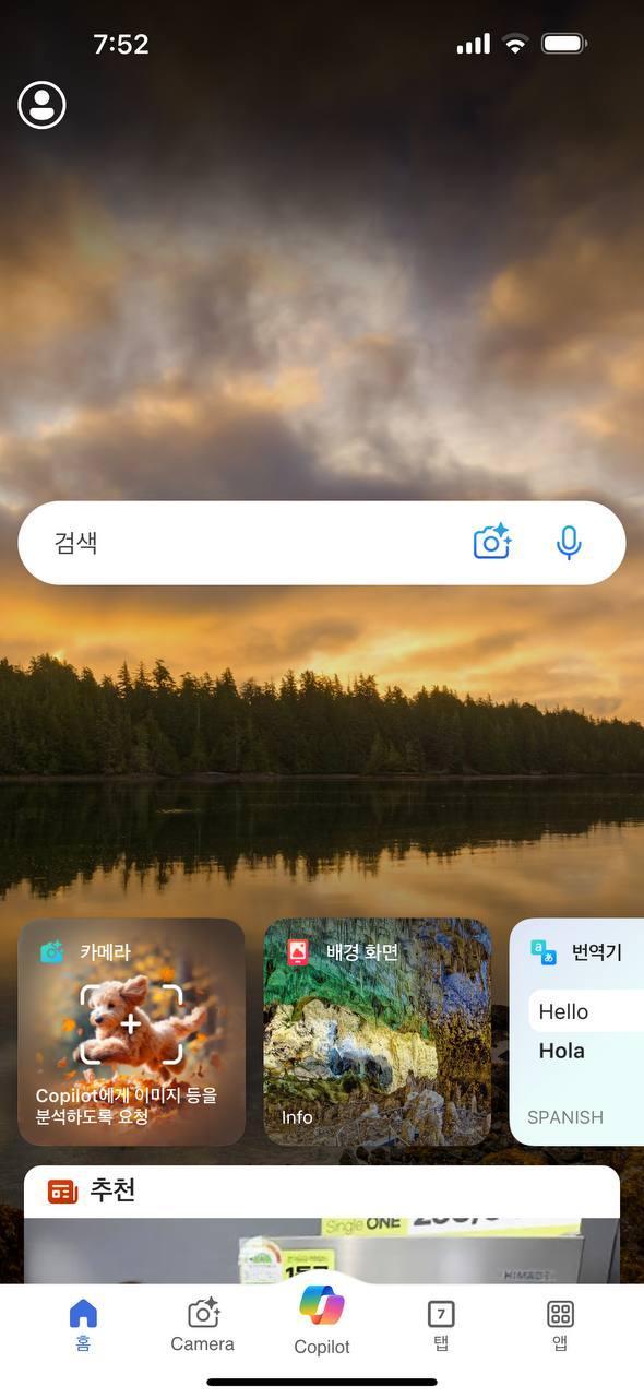 Mobile 에서는 Bing 앱, 엣지 브라우저 앱, 코파일럿 앱을 통해 사용할 수 있습니다. 엣지 브라우저 앱에서 Bing 검색만 때서 Bing 앱을 만들었고, Bing 앱에서 코파일럿만 때서 코파일럿 앱을 만든것으로 보입니다.