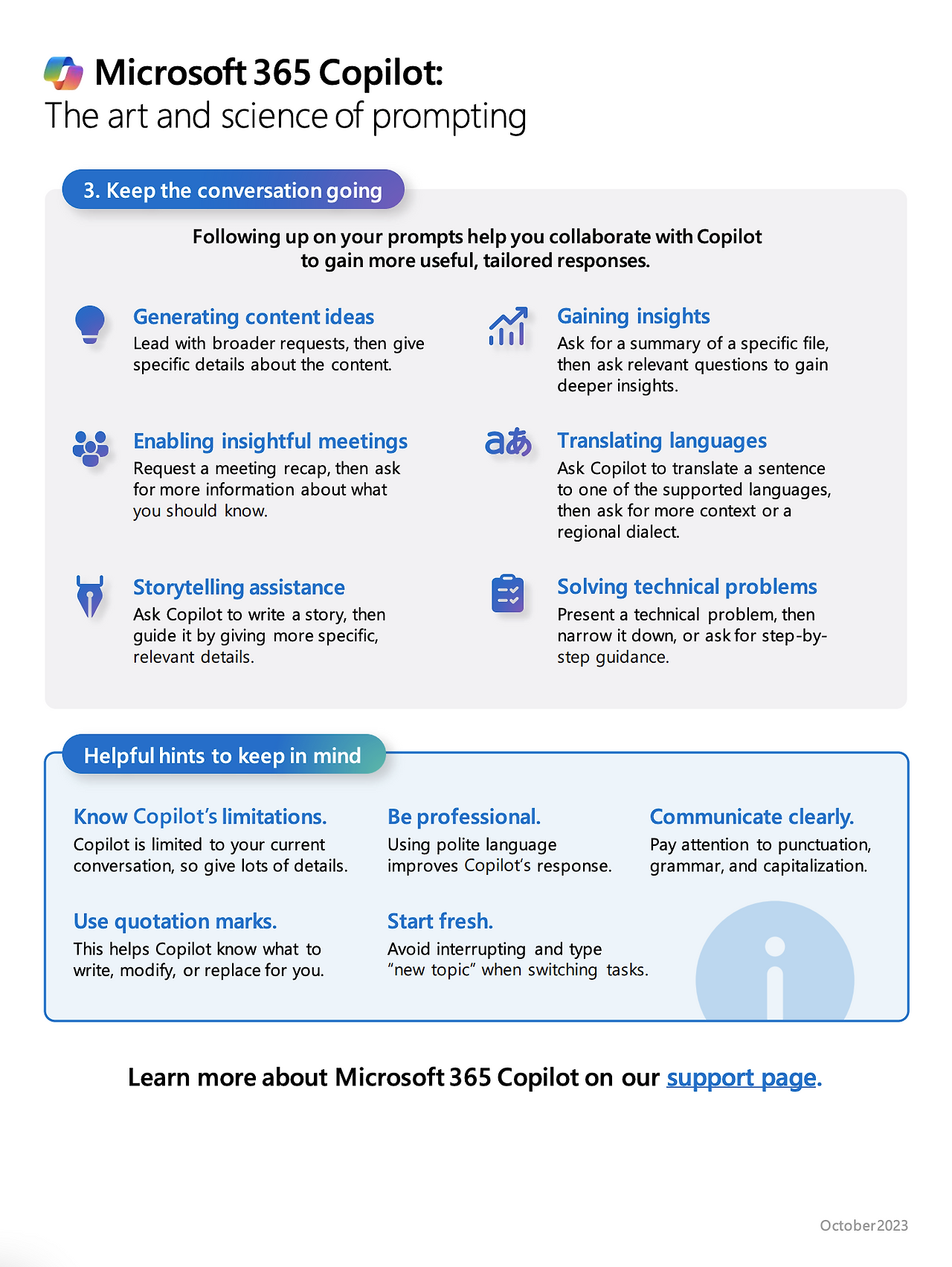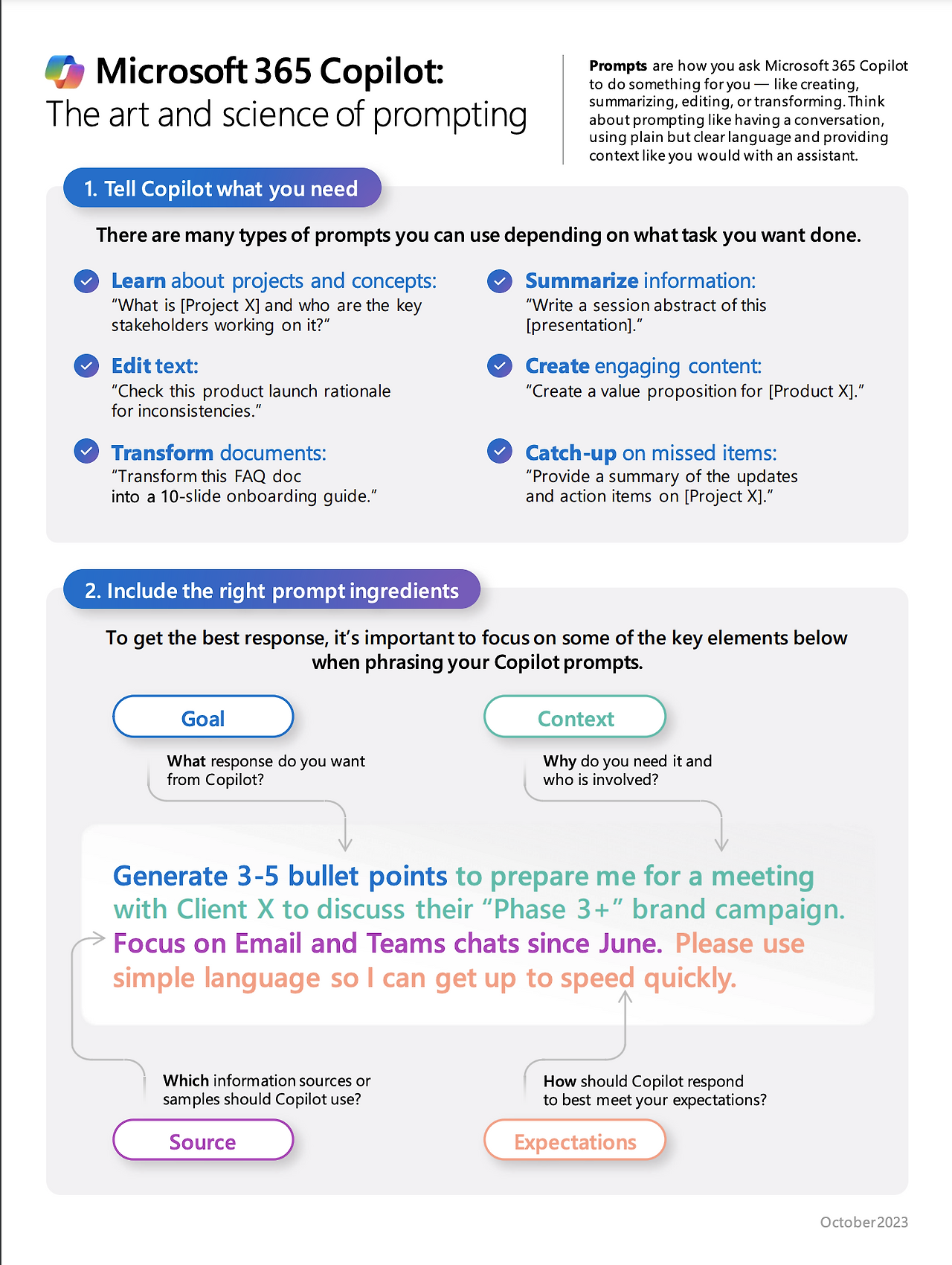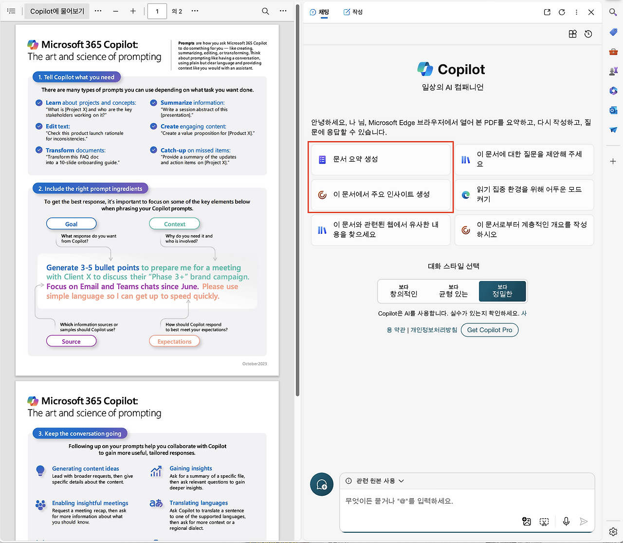 Microsoft에서 제공한 Copilot 프롬프트 가이드가 있어 첨부하며, 코파일럿으로 요약한 결과도 공유합니다.