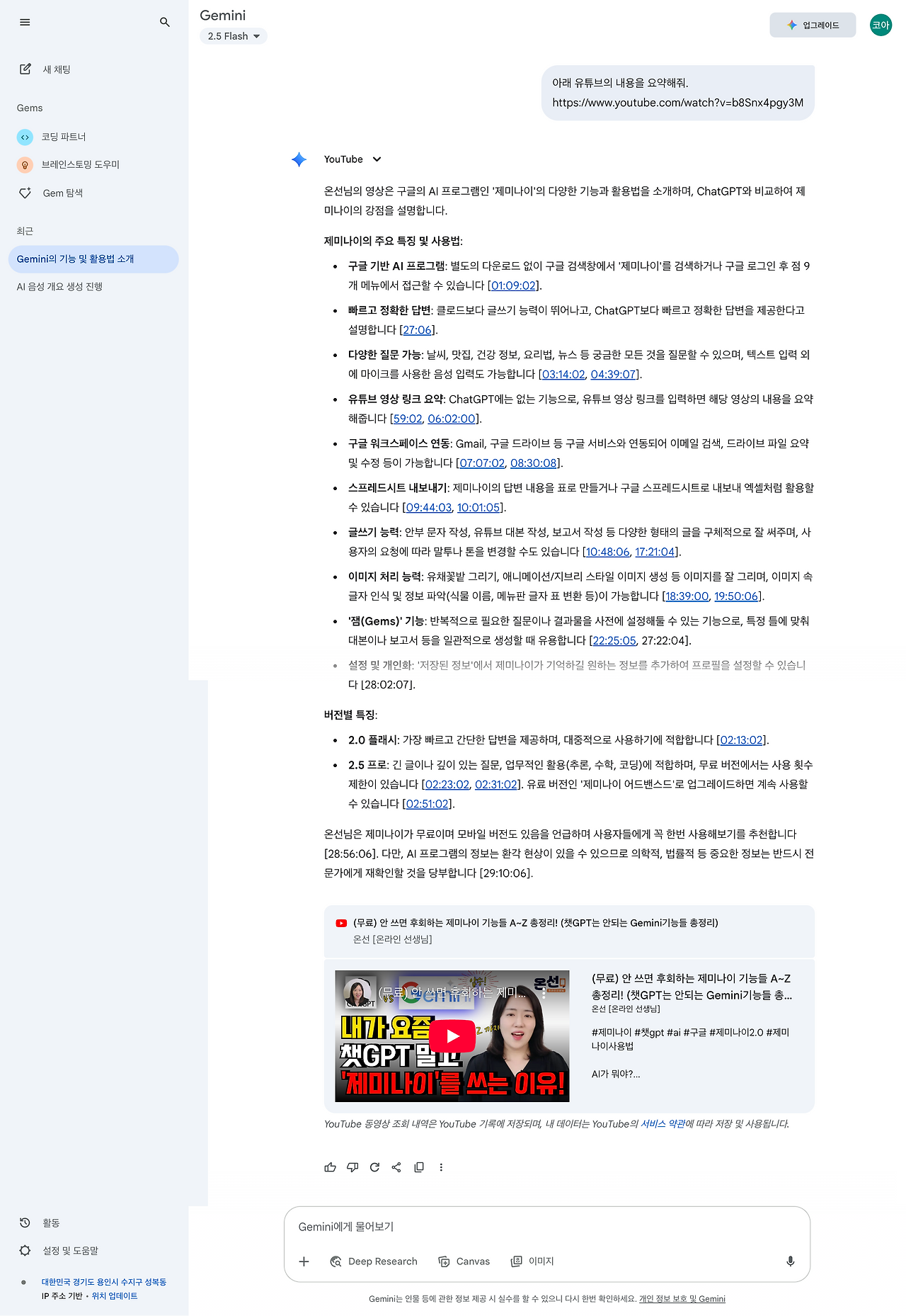 → Gemini가 본문 내용 요약까지 척척 해줍니다.