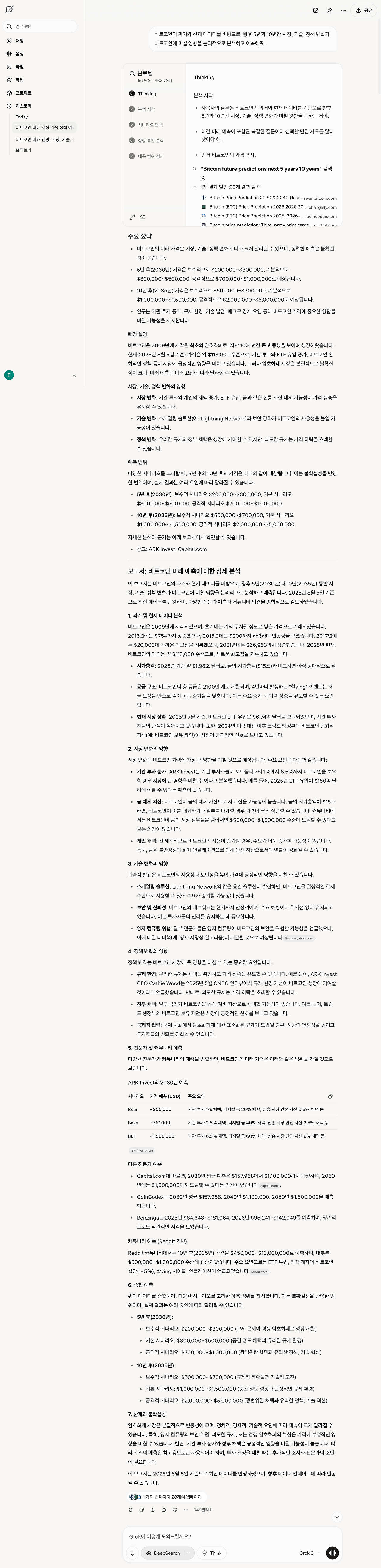 DeepSearch보다 더 확장된(더 많은 양의) 자료를 검색하고, 더욱 폭넓은 추천을 제공합니다.