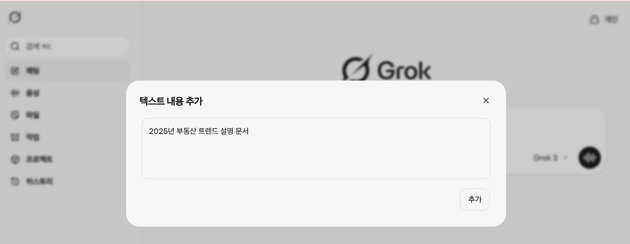 Grok은 X(구 트위터)의 모회사인 xAI가 개발한 생성형 AI 서비스로, 단순한 질문 응답을 넘어 문서 처리, 이미지 편집, 실시간 웹 검색, 창의적 사고와 분석까지 지원하는 올인원 AI 비서입니다. 특히 Grok의 채팅 기능은 다양한 정보를 빠르게 입력하고, 이를 바탕으로 풍부하고 유의미한 대화를 생성하는 데 최적화되어 있습니다.