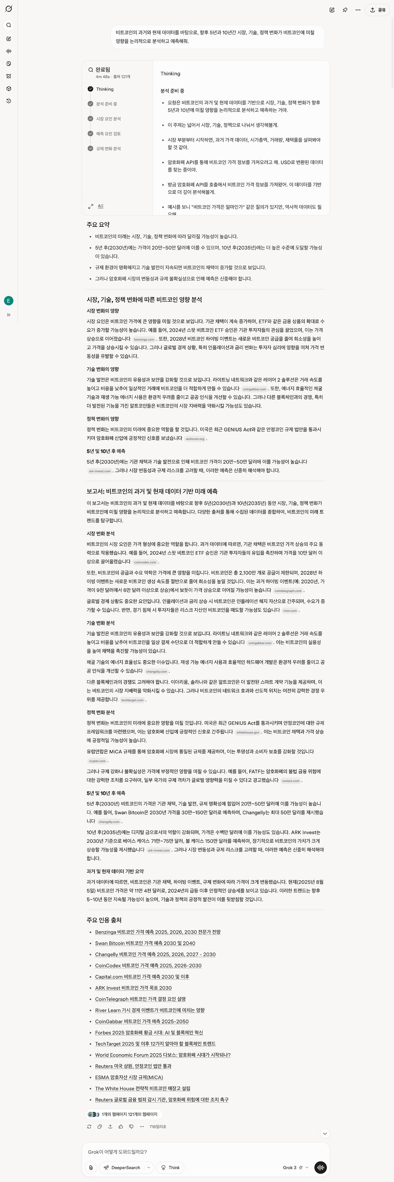 프롬프트 : 비트코인의 과거와 현재 데이터를 바탕으로, 향후 5년과 10년간 시장, 기술, 정책 변화가 비트코인에 미칠 영향을 논리적으로 분석하고 예측해줘.