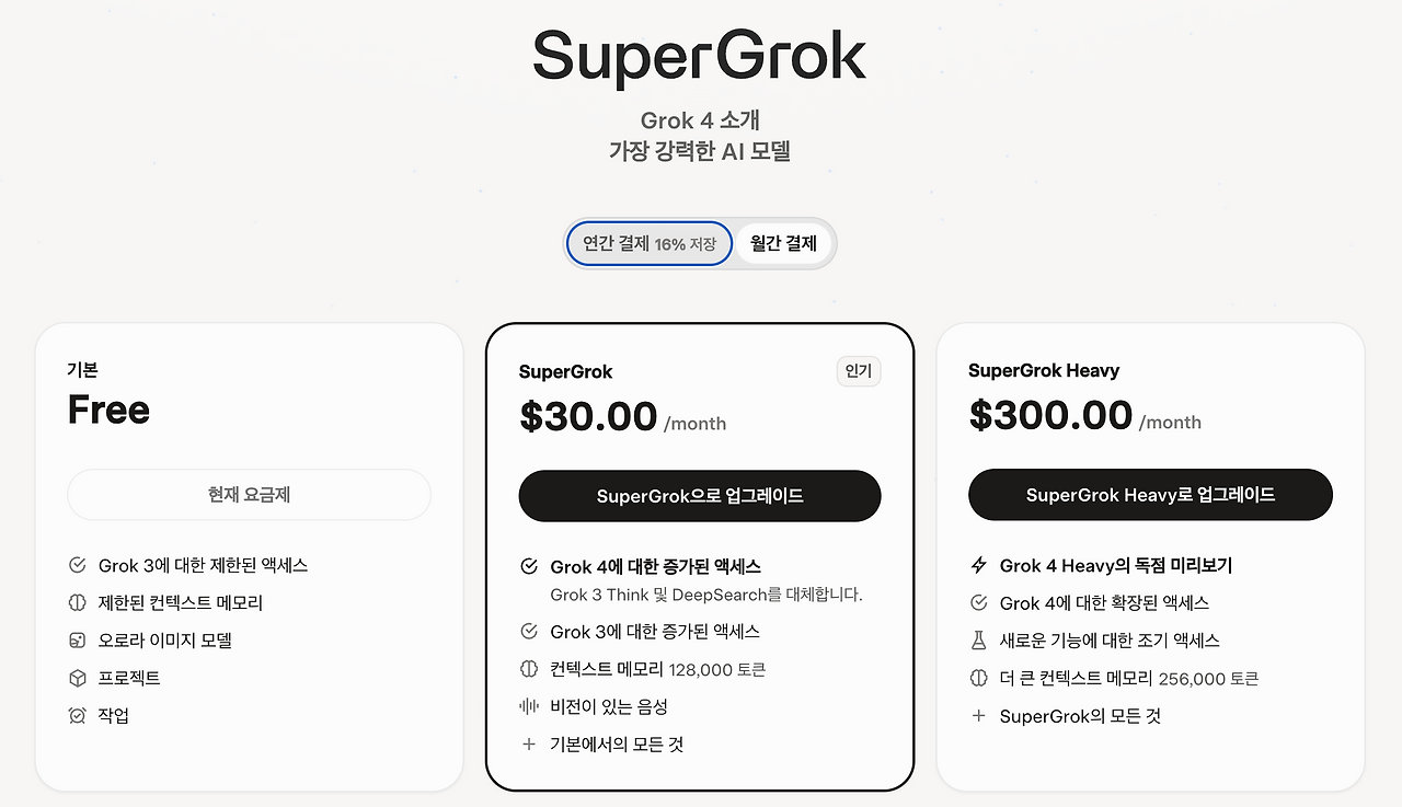 Grok의 프리미엄 모드로 업그레이드 할 수 있는 화면으로 뜹니다.