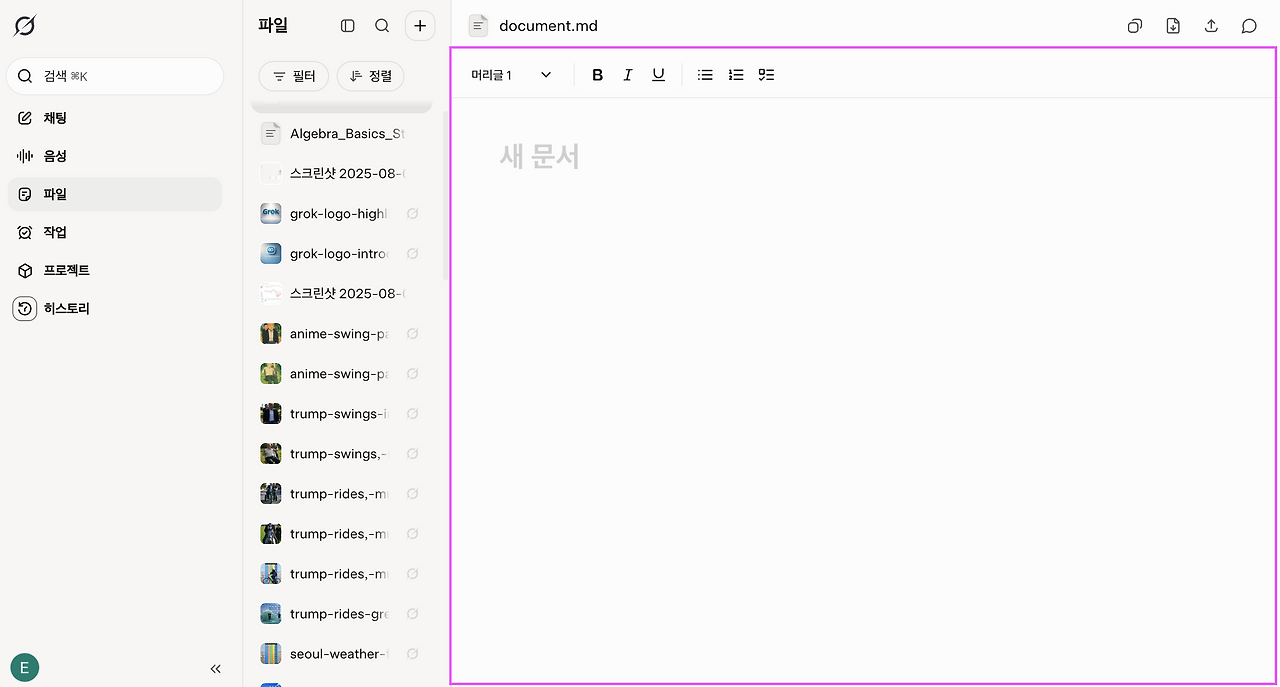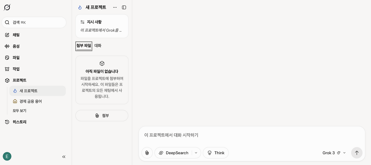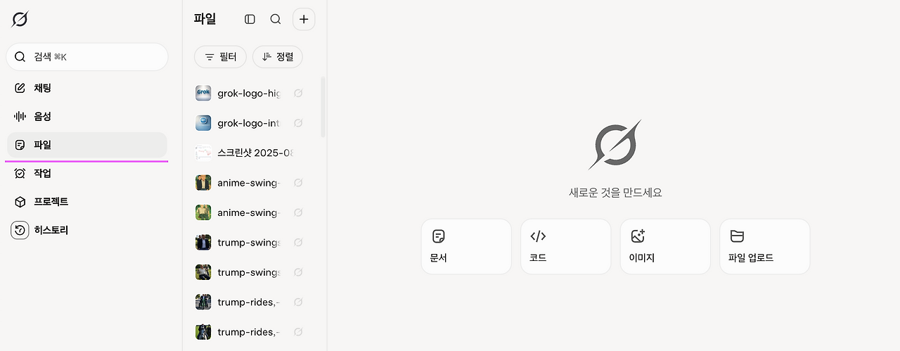이번 글에서는 Grok의 주요 기능인 [파일], [작업], [프로젝트]에 대해 직접 사용해본 내용을 바탕으로 소개하고, 각각을 어떻게 활용할 수 있는지 구체적으로 살펴보겠습니다.